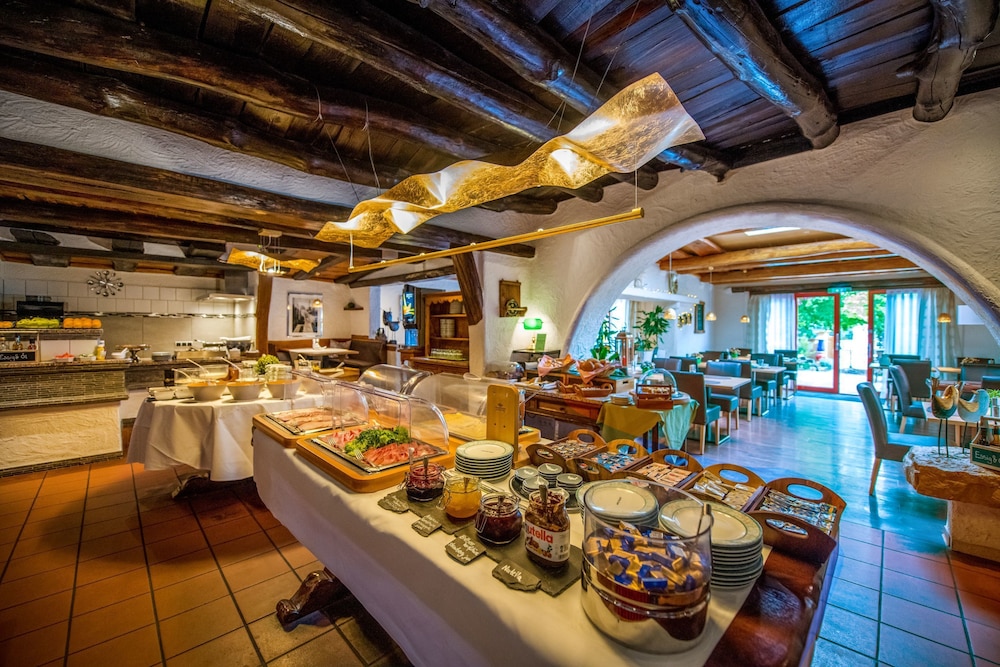 Pragtfuld farverig hotel. Vi har benyttet det tidligere og gerne igen. Dejlig gåtur langs floden indtil byen. Biergarten om sommeren.