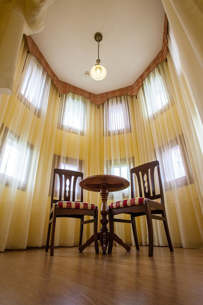 Из минусов могу отметить следующее — безвкусный интерьер комнаты, запахи из кухни, крик павлинов (не часто) по ночам и бассейн в тени двора. Из плюсов — зелень дендрария в окнах, тишина, прекрасный ресторан прямо при отеле, приветливый персонал, много зелени вокруг, вкусные завтраки, близость моря и своя небольшая библиотека в отеле.