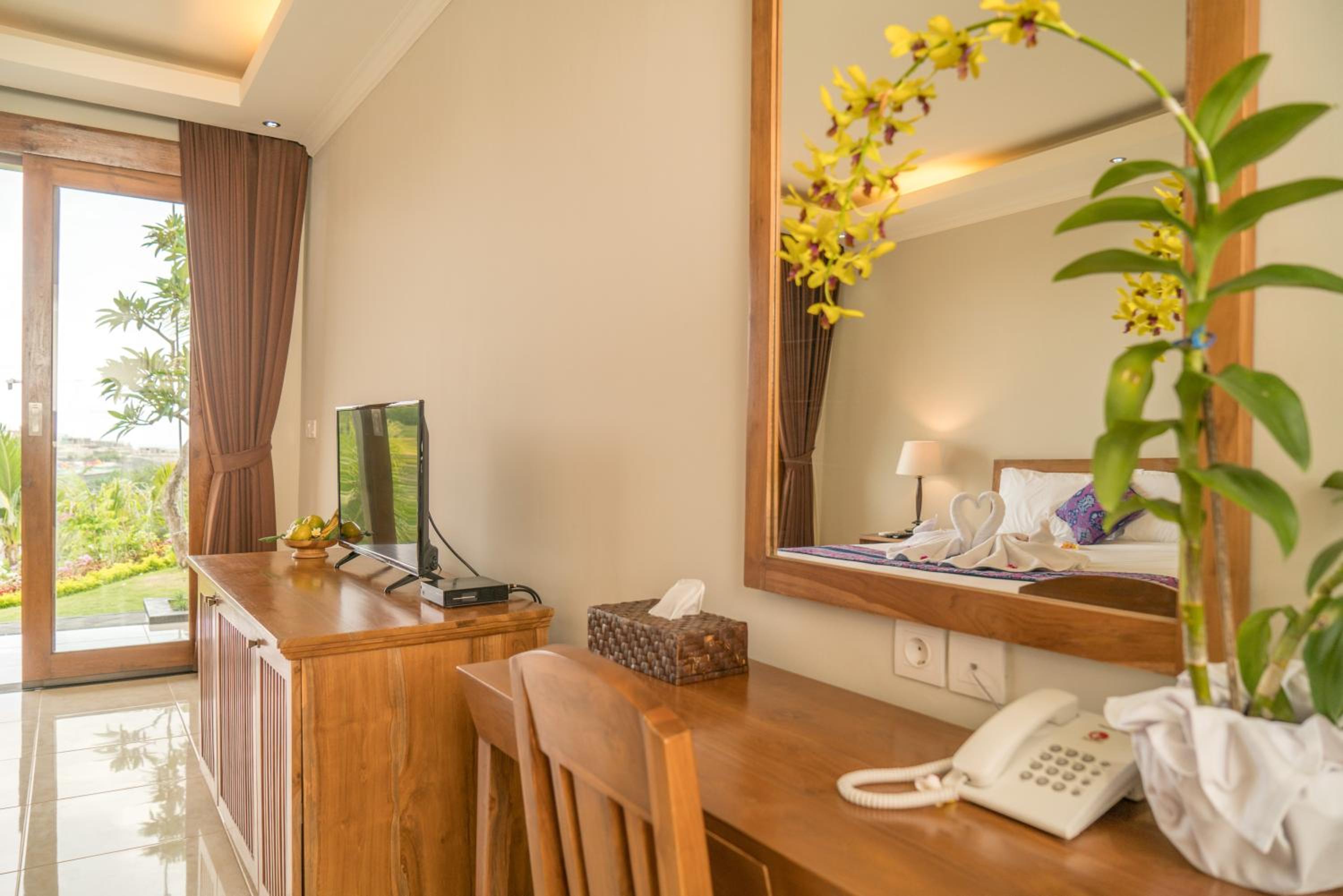 Indulge in a stay at Puri Pandawa Resort, where luxury meets comfort. Each room is equipped with modern amenities, including a flat-screen TV, safety deposit box, and a private bathroom. Some rooms even offer stunning sea views and a private balcony for a perfect retreat.