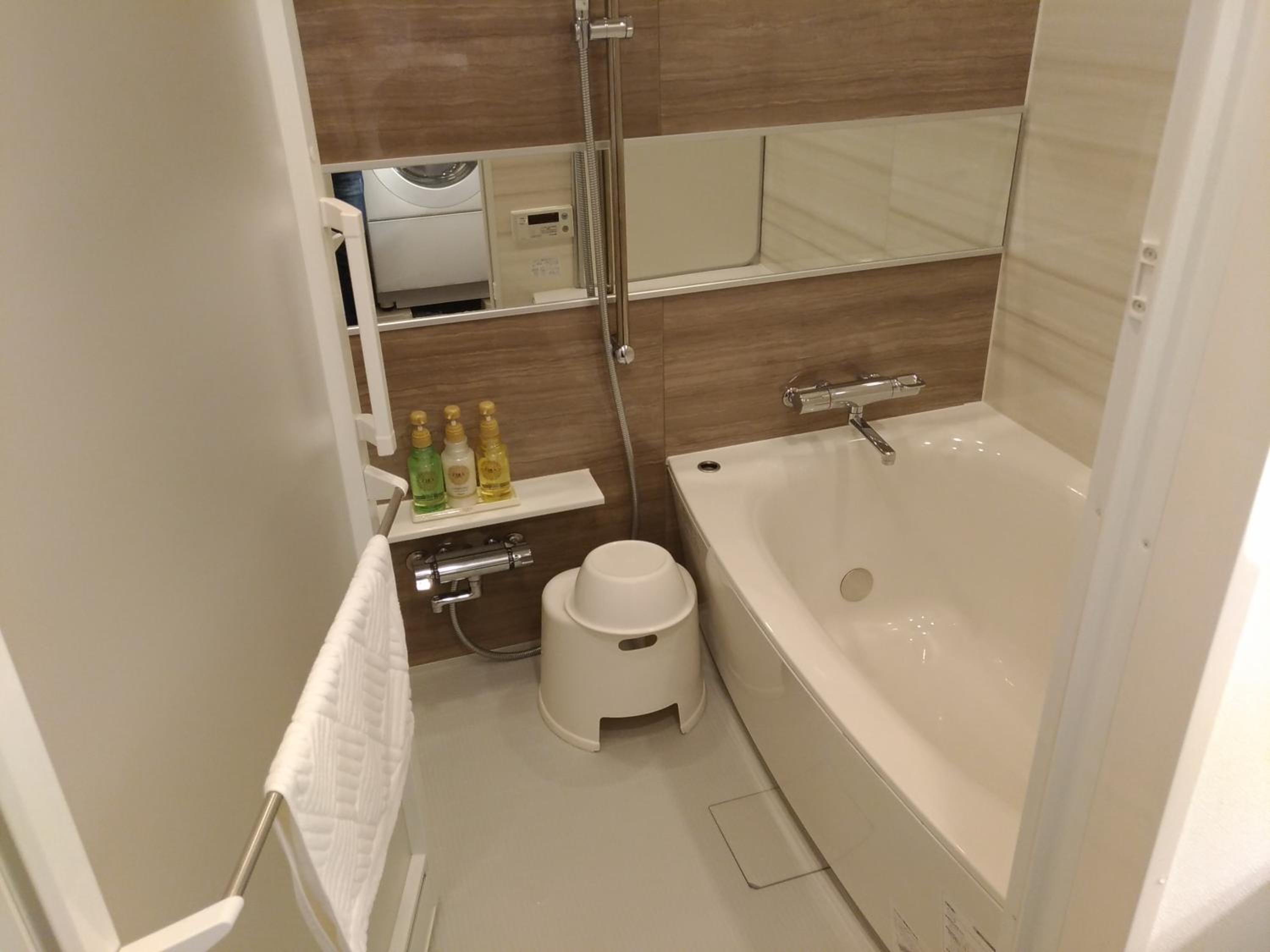 Each unit at Hotel Axas Nihonbashi boasts a flat-screen TV, kitchenette with microwave, fridge, and stovetop. Relax in the private bathroom with a soothing bath and provided slippers. Enjoy the convenience of towels and bed linen during your stay.