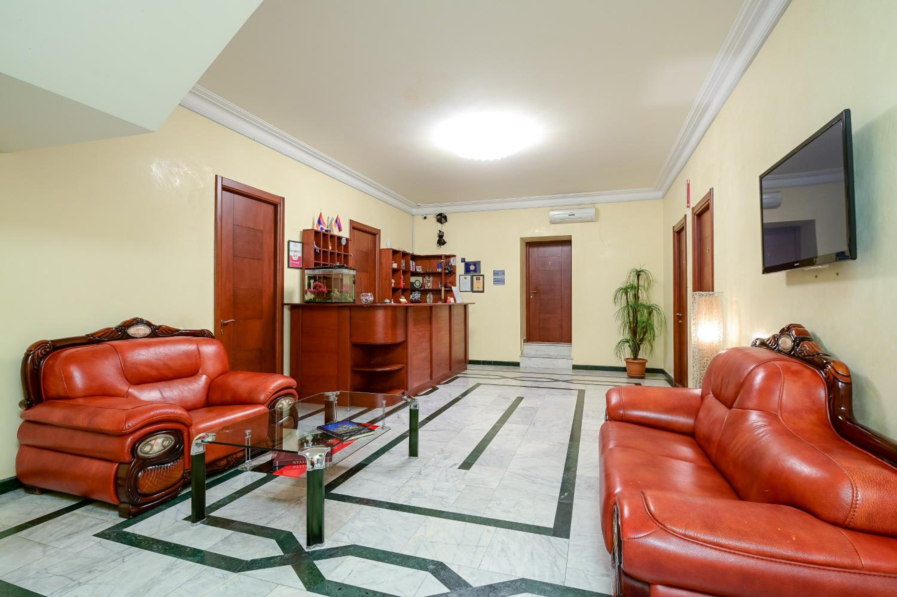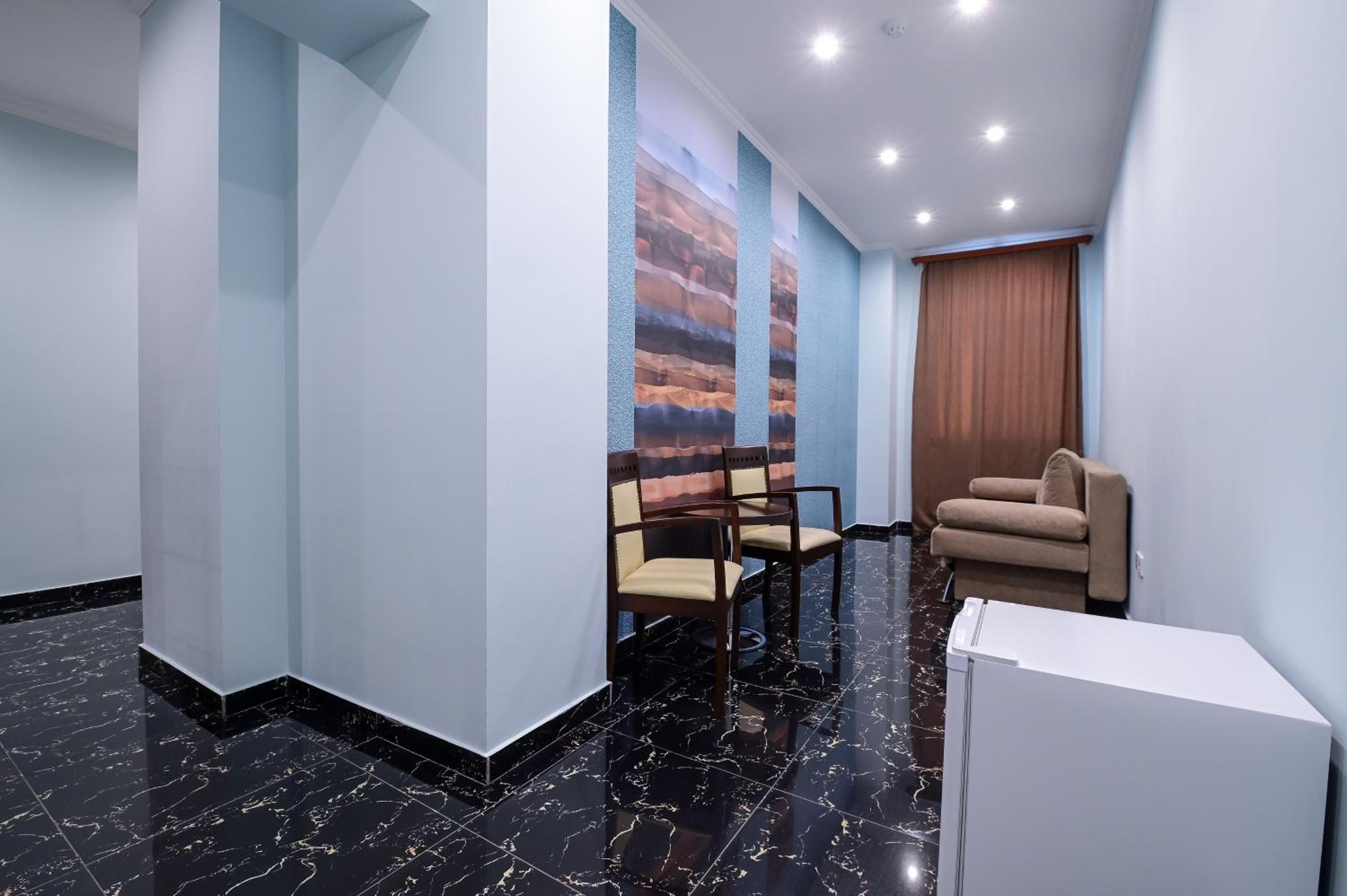 The location is excellent – right on Yerevan’s central circle, so you can easily walk anywhere in the center. At the same time, the windows face a quiet street, so it was very peaceful at night and in the morning. There are shops, a pharmacy, restaurants and bars just nearby. It was also easy to find the hotel late in the evening thanks to the small flags outside, which make it stand out from the residential buildings.