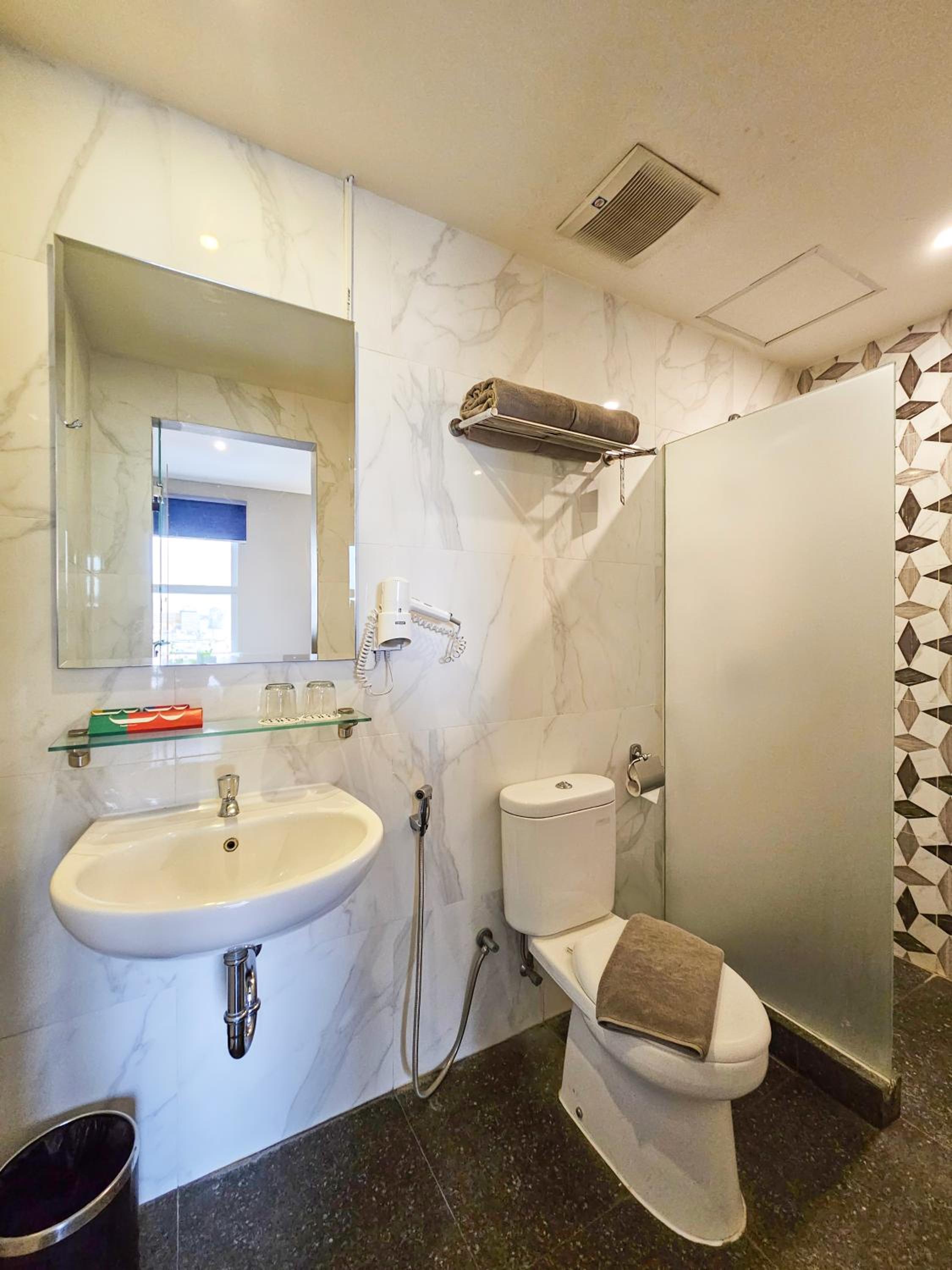 The bathroom not really well set-up. Basin need improvement to get naturally gestures and ergonomically. Shower also need a partition in order to not showering the closet.