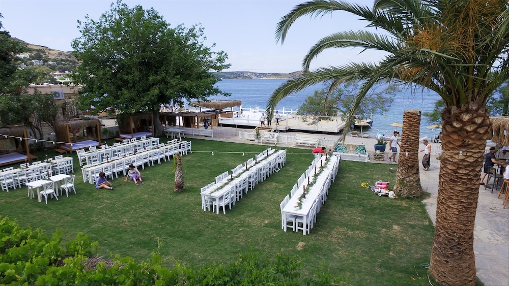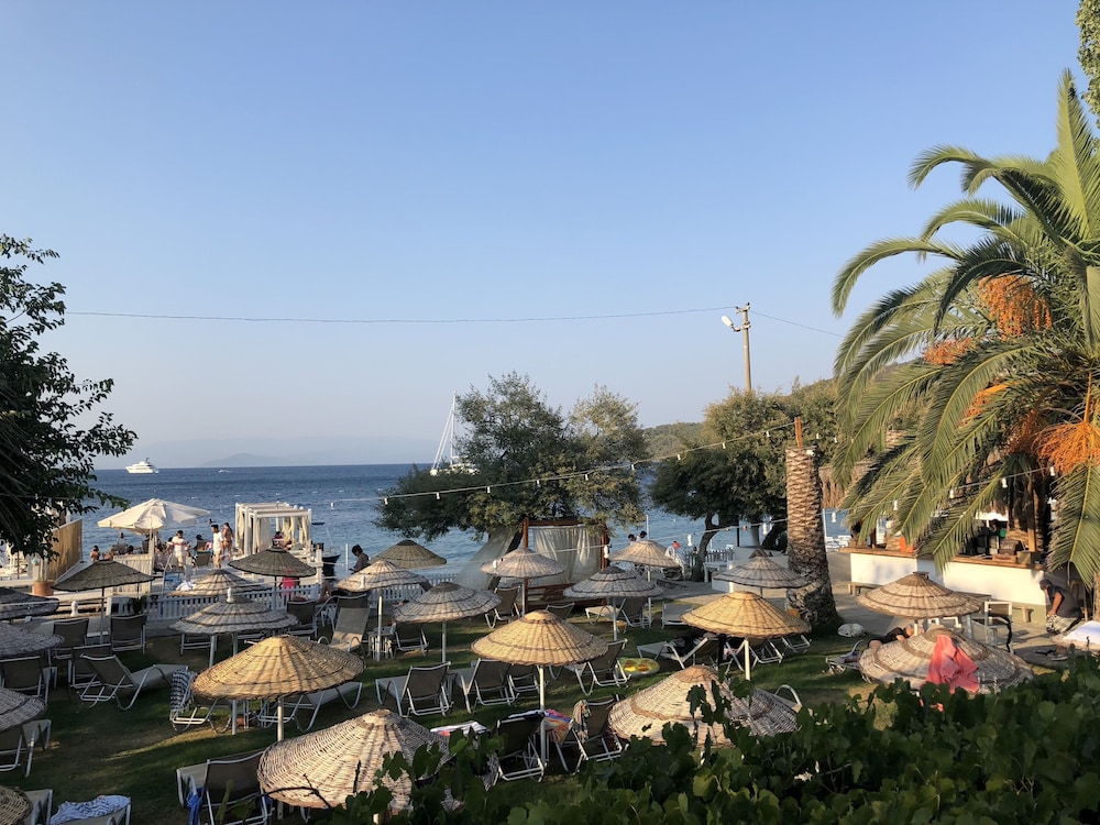 Otel, özellikle plajı itibarıyla çok güzel. Ama herşeyin ötesinde burayı sırf çalışan Serkan bey - (uzun boylu uzun saçlı sakallı) kişi gibi çalışanlar için tercih edebilir, tekrar tekrar gidebiliriz. Bir düğün için Bodrum seyahatimizde tercih ettik. Sağolsun bütün sıkıntı ve problemlere hızlı cevap veren, mütevazi, müthiş bir çalışan. Bazen personel kalitesi bu gibi hizmet sektöründe her şeyin önüne geçebiliyor, umarım yönetici ve sahipler bu durumun farkındadır. Buraya bazı problem ve aksaklıkları yazmamamızın tek sebebi bu kişi.