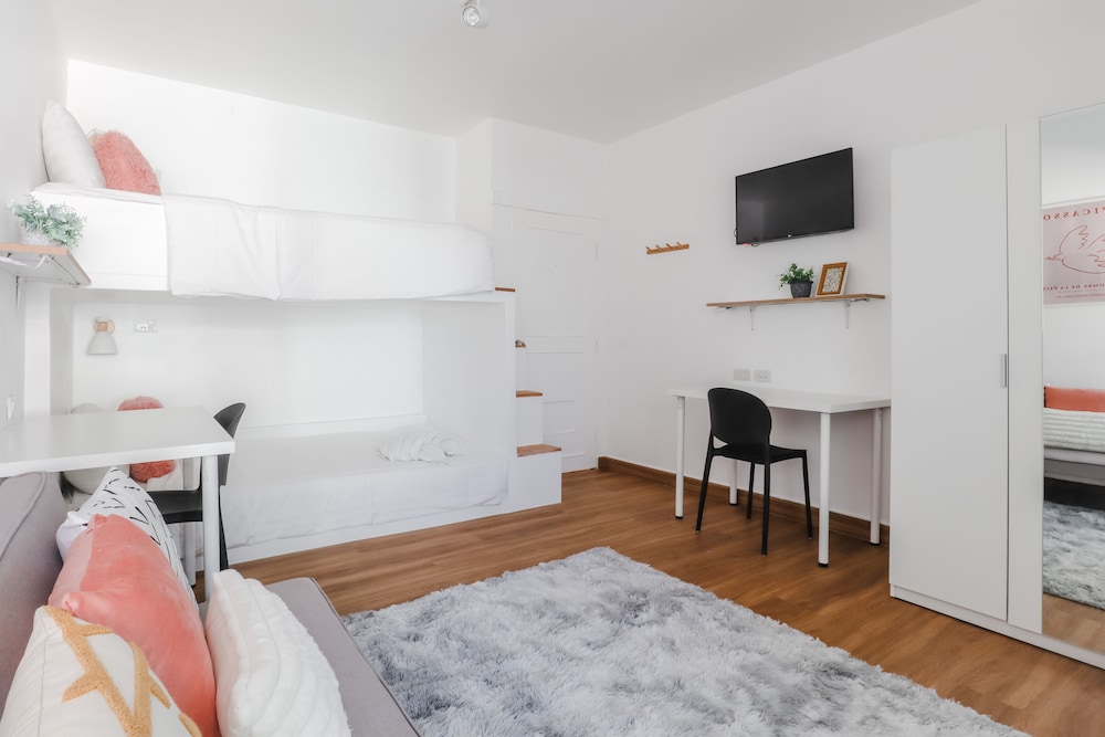 古いマンションです。エアコン無しなので暑がりの人には向きません。ベットメーキングと掃除が毎日有るのは評価出来ます。
