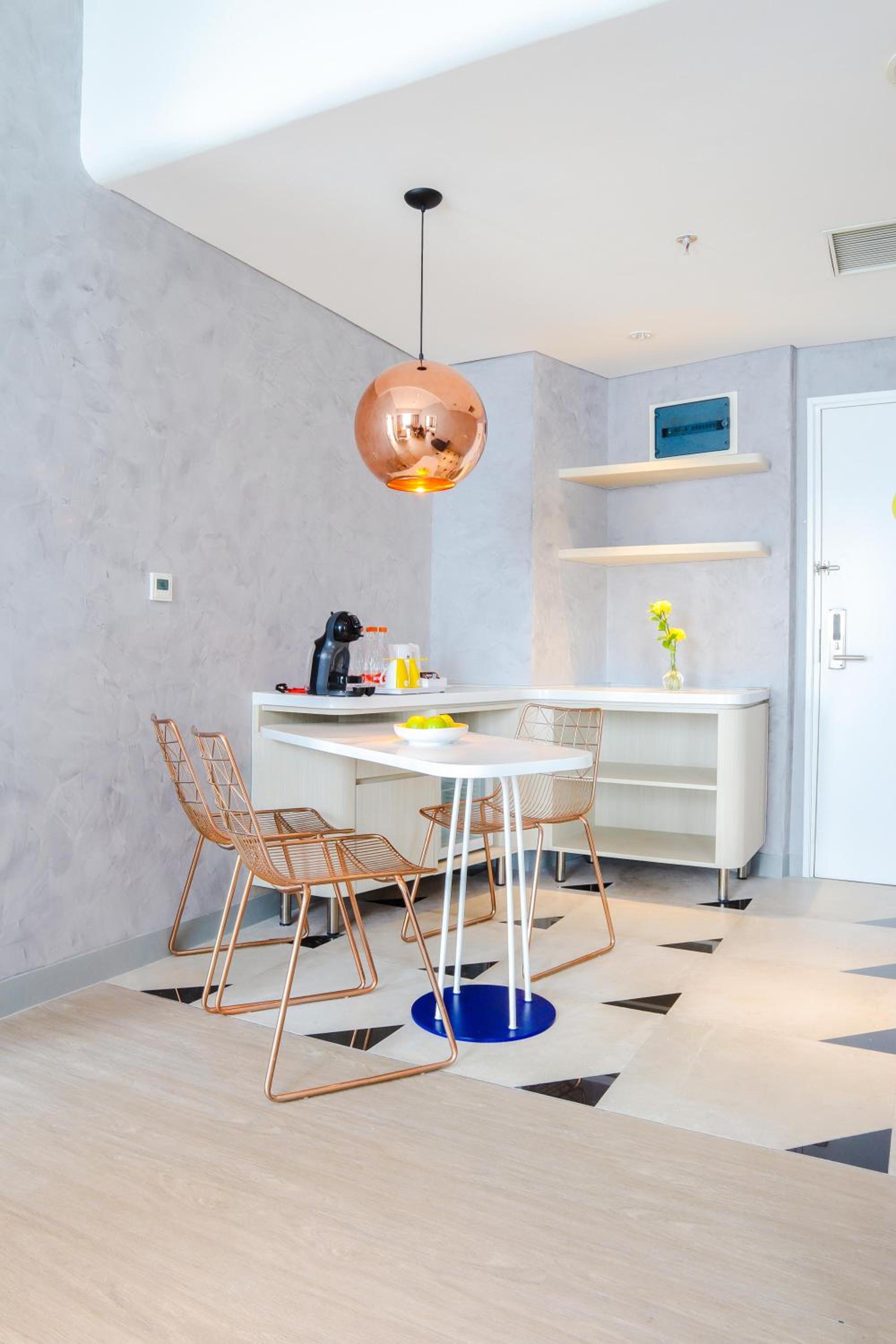Хороший отель, всё чисто, вежливый персонал. Супер интернет 100мбит. На первом этаже продуктовый магазин и много кафешек. Рядом есть молл, в общем хорошее расположение. Отличный вид на Джакарту с верхних этажей.