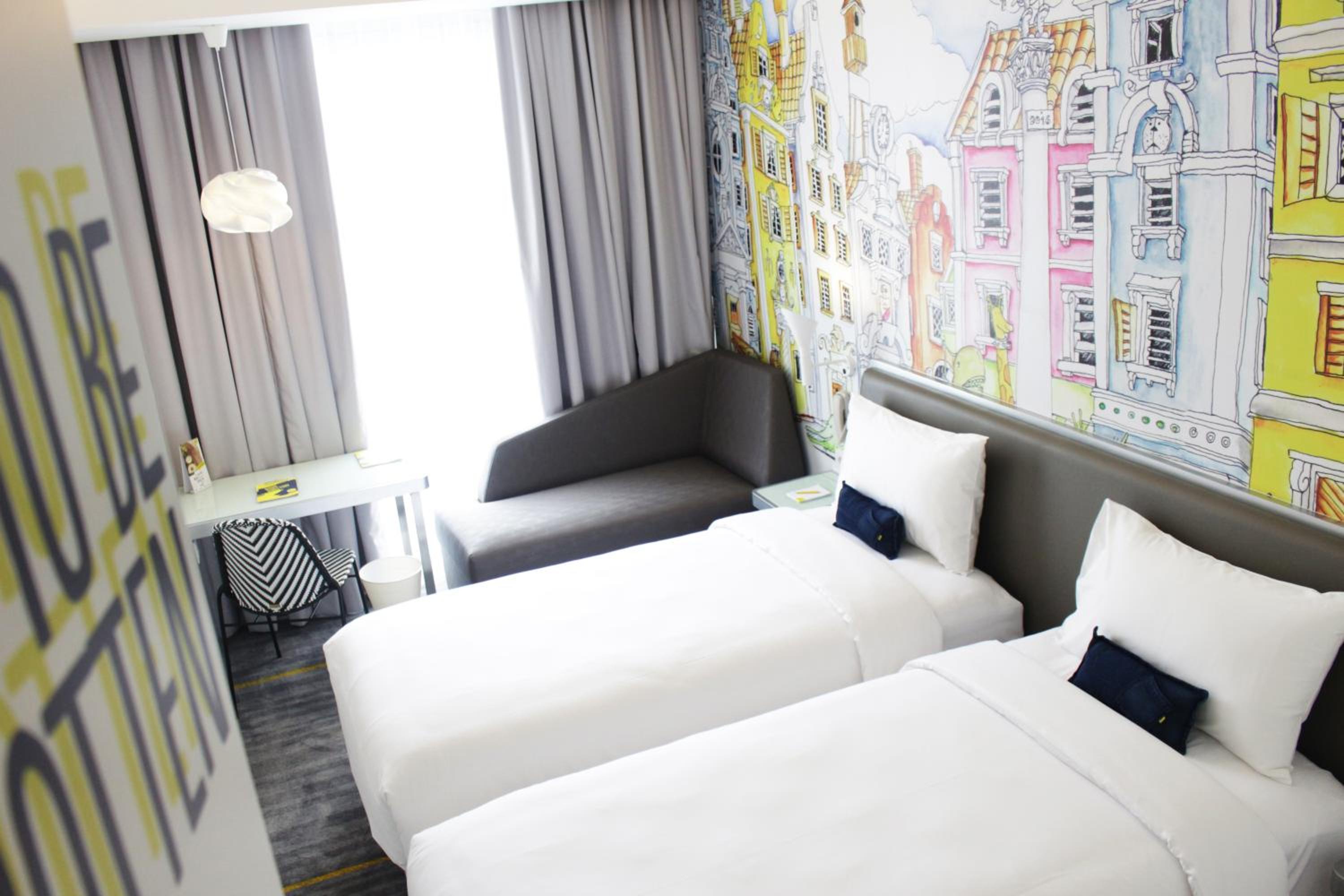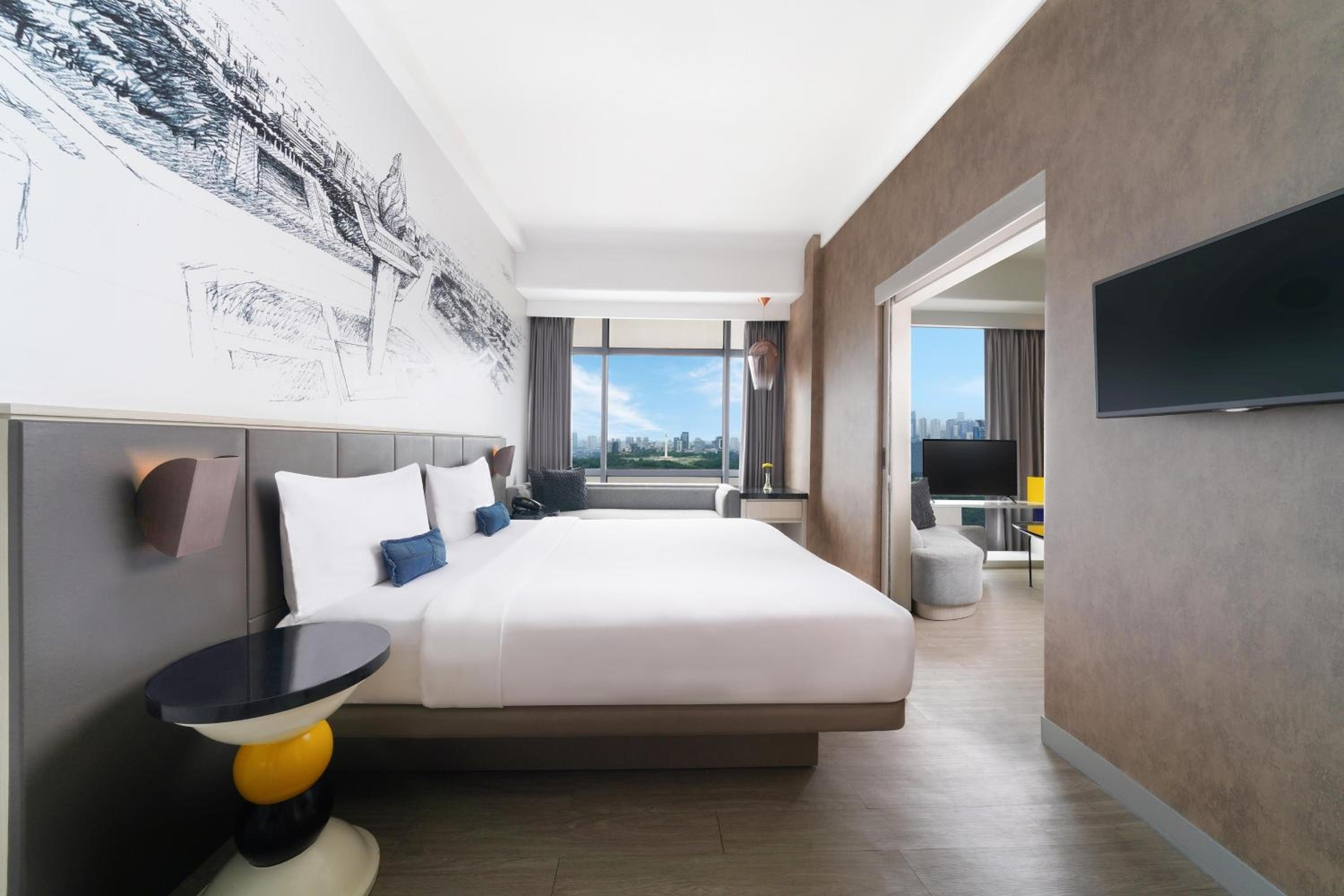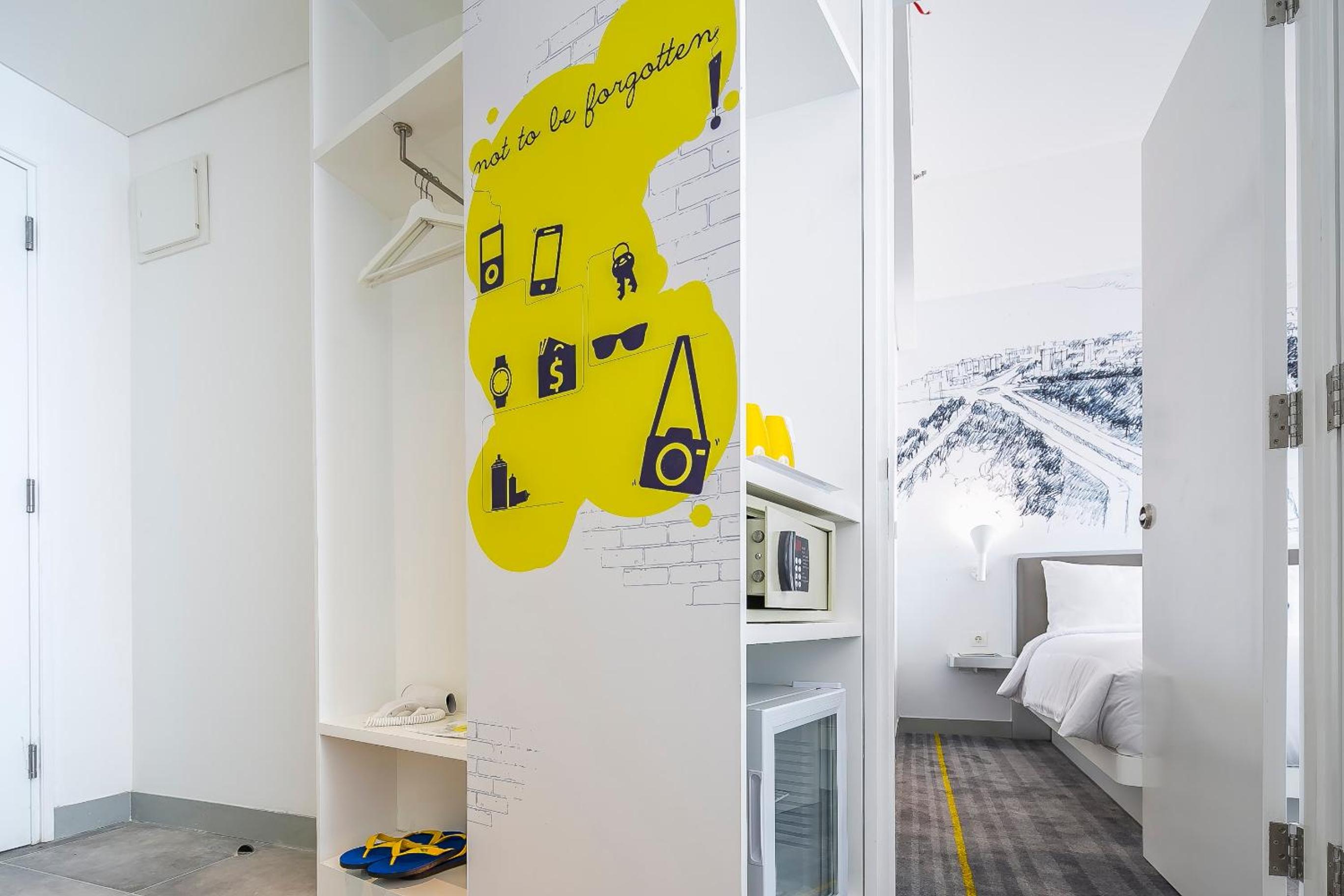 YELLO Hotel Harmoni offers a stylish stay in Hayam Wuruk, near Jakarta's main attractions. The modern rooms are adorned with bright wall art and quirky decorations, providing a unique and vibrant atmosphere for guests to enjoy.