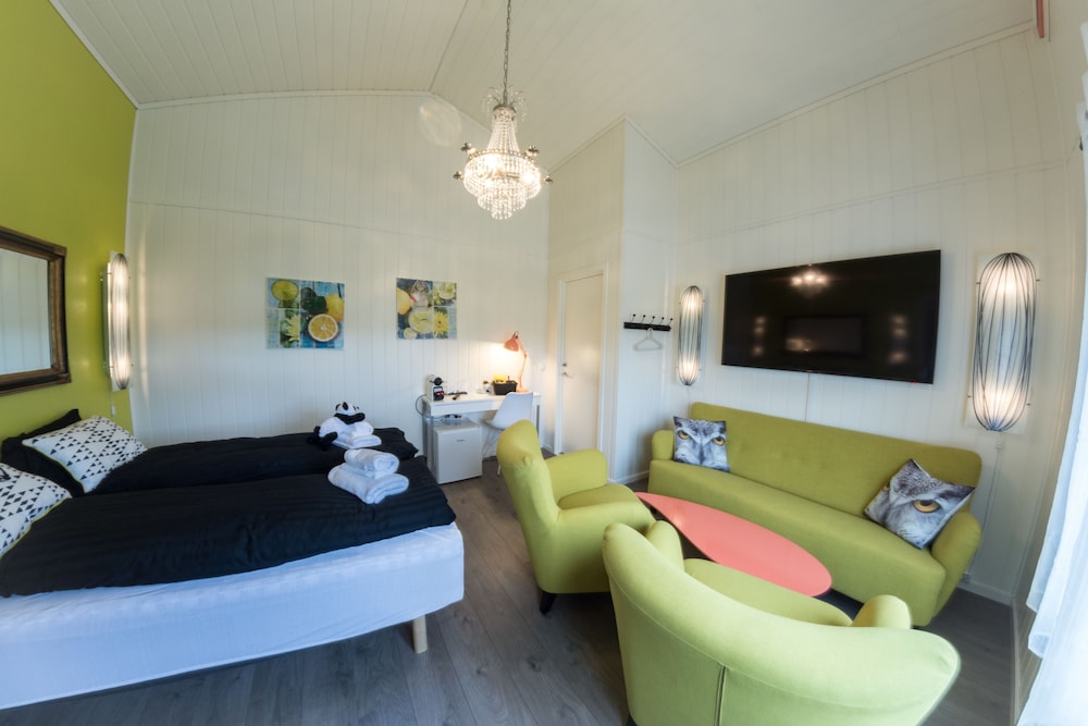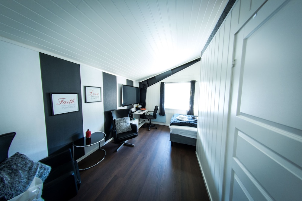 Flott og spennende rom (Afrikanske dyr på veggene). Sengen var komfortabel. Bodde der fra fredag-mandag. Rommet manglet litt utstyr ( bestikk, vinåpner og vannkoker). Fikk låne det av Polar hotell rett ved siden av. Frokosten var bra, litt hjemmekoselig😊
