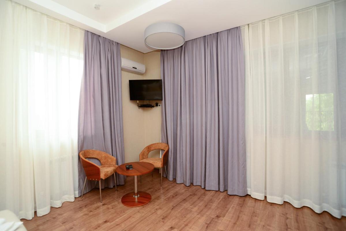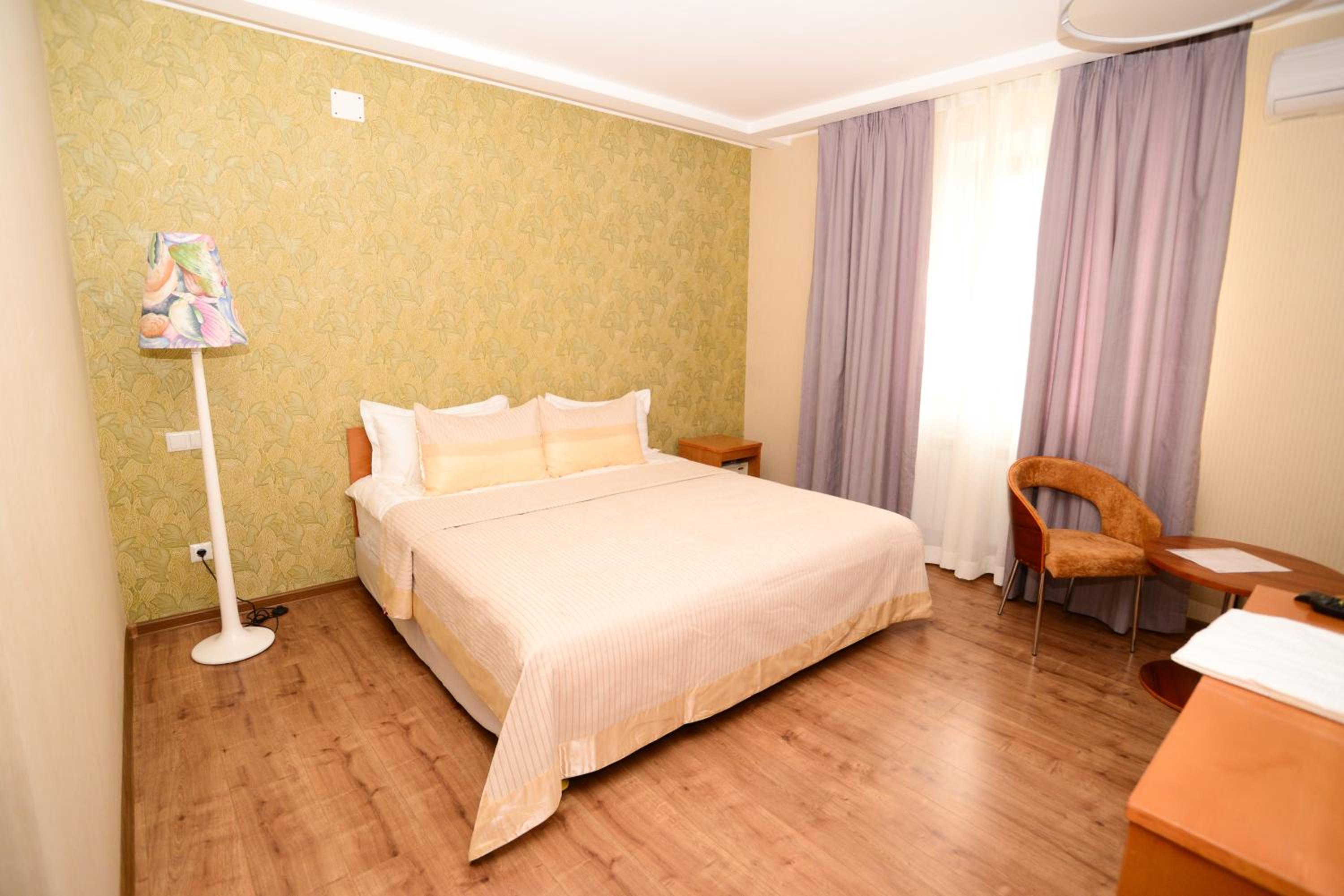 Experience the comfort of air-conditioned rooms with wooden floors, flat-screen TV, safe, and more at Grushevy Hospitality Boutique.