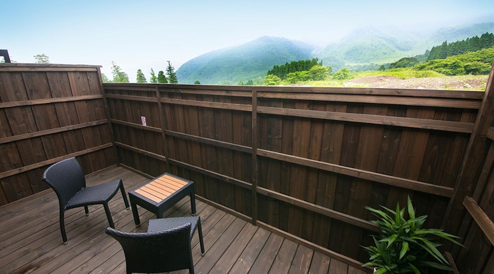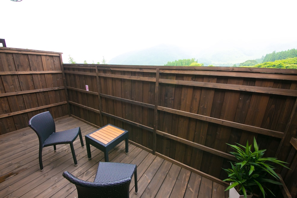 酒店地店位於由布山上,房間面向山景,令人心情放鬆。房內有私人溫泉。整潔舒適。有泊車位,前往附景點方便。
