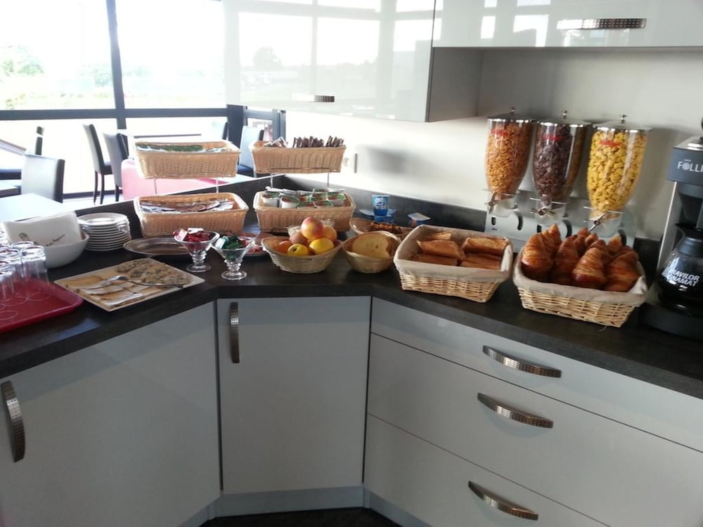 Très pratique on a pu se garer devant la chambre, l’autoroute pour repartir était juste à côté de l’hôtel. Personnel dans le restaurant très gentil.