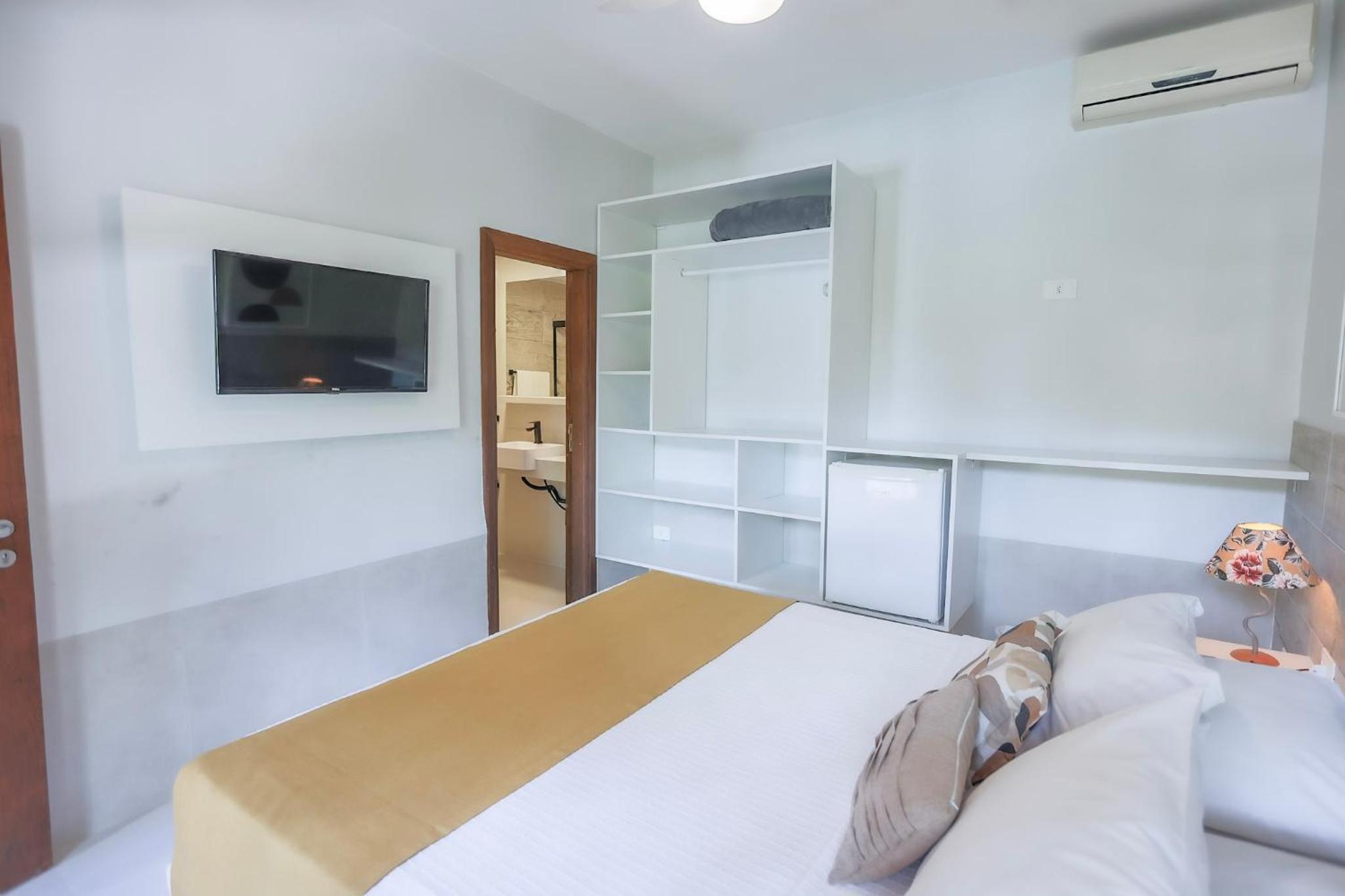 Gostei dos quartos, estavam reformados e bem equipados e a piscina que também parecia nova bem limpa . A localização é o ponto alto, fácil de ir a pé para praia e para alguns restaurantes além de ter estacionamento. A equipe foi bem atenciosa também.