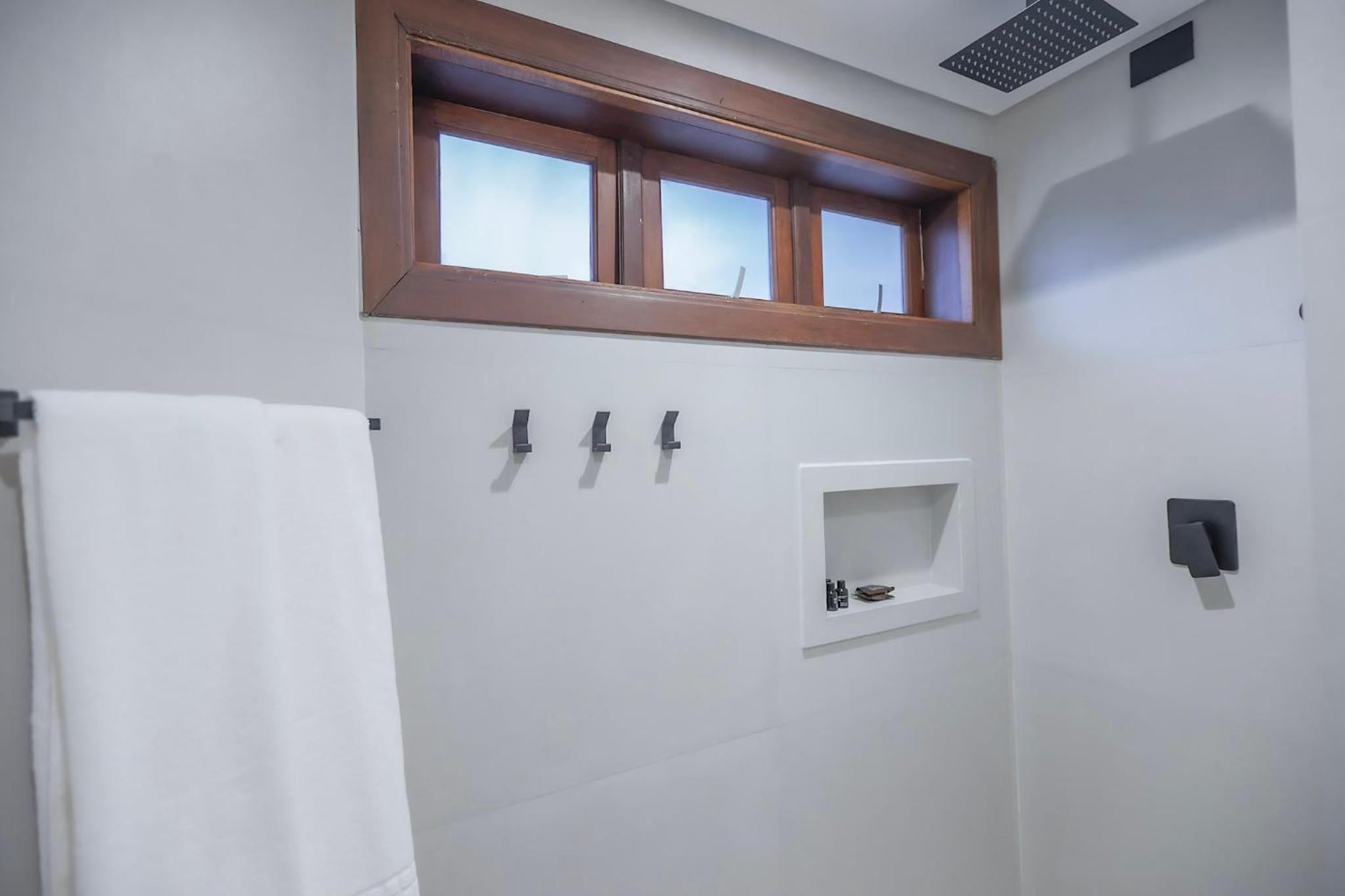 Faltou ter um varal no quarto para toalha e roupa de praia.