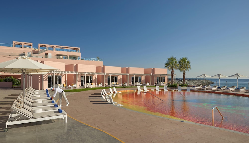 The adult pool looks terrible in a poor condition nothing compared to the website. Our bedroom windows and floor were not clean. The main corridors were dirty as well (food leftover, dirty tissue, dirty cotton buds in front of our bedroom entrance). The view from our hotel was facing the sea but also the unfinished construction of the residence next to the hotel. Overall experience was very bad and not matching the luxury resort feel expected.