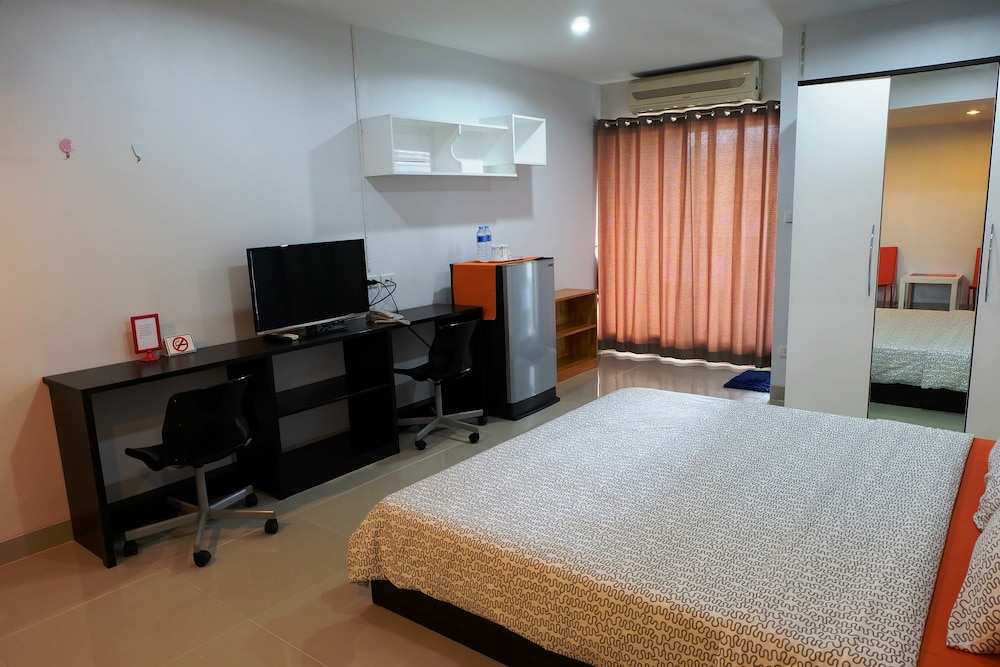 Positive - Convenient location for foods and transportation. Restaurants and 7-11 are all near. Building is new and clean. Laundry service and washing machines are available, with clothes line at balcony. Big bathroom with water heater. The place is really safe.