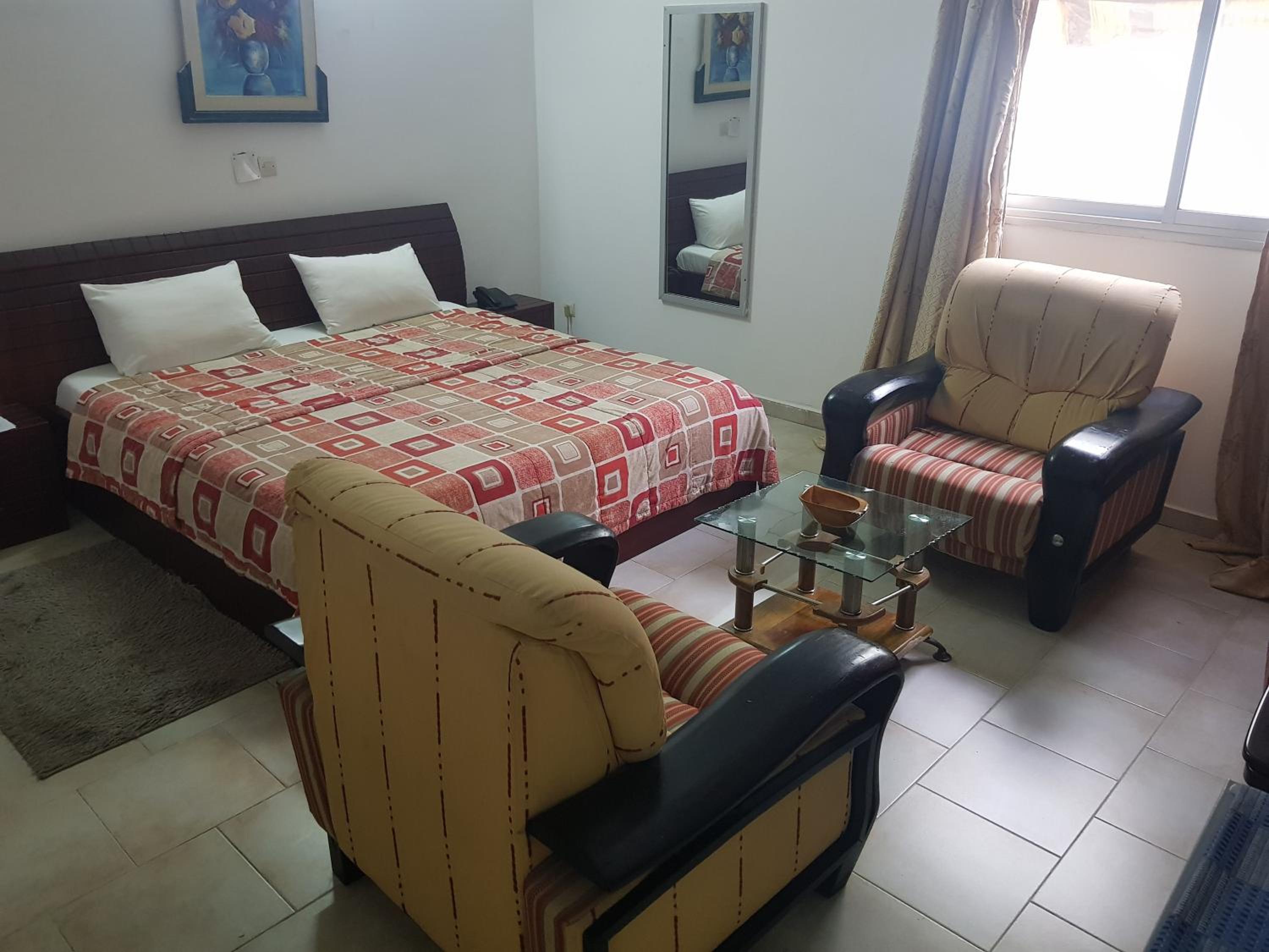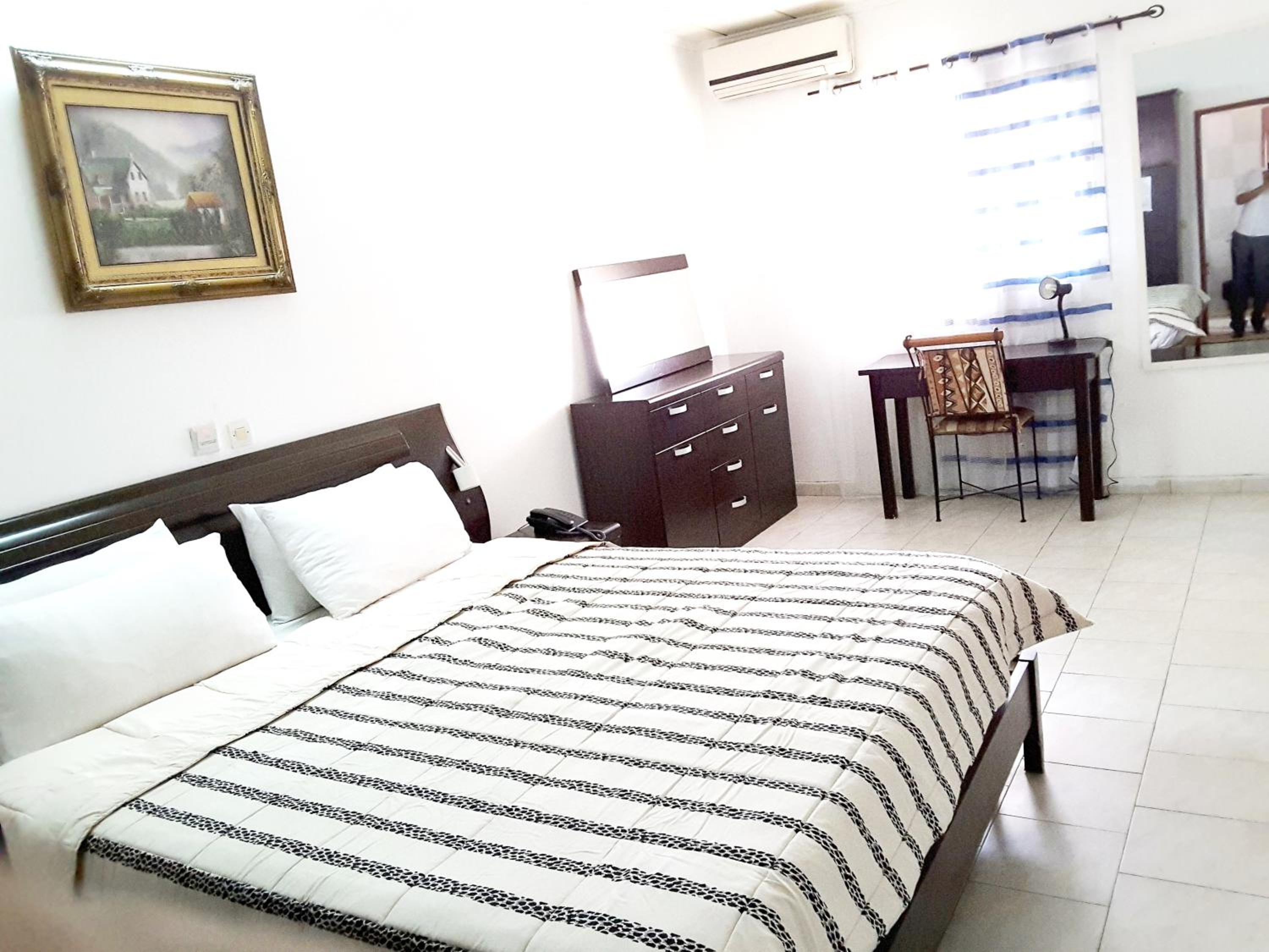 Secure and Chic Environment: Enjoy the convivial and warm atmosphere of our secure Touristhotel Residences in Côte d'Ivoire. Located in a gated residential area with its own security, the hotel offers a chic and tranquil retreat away from the hustle and bustle.