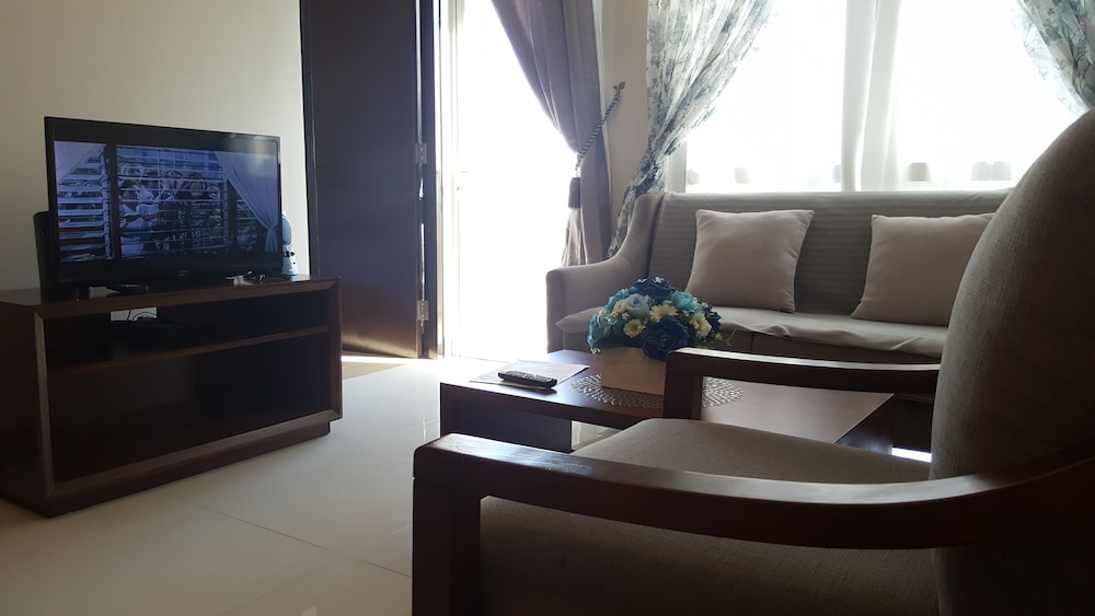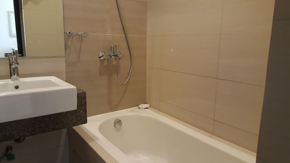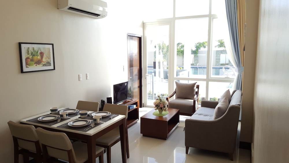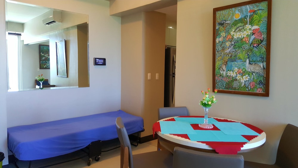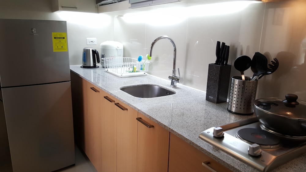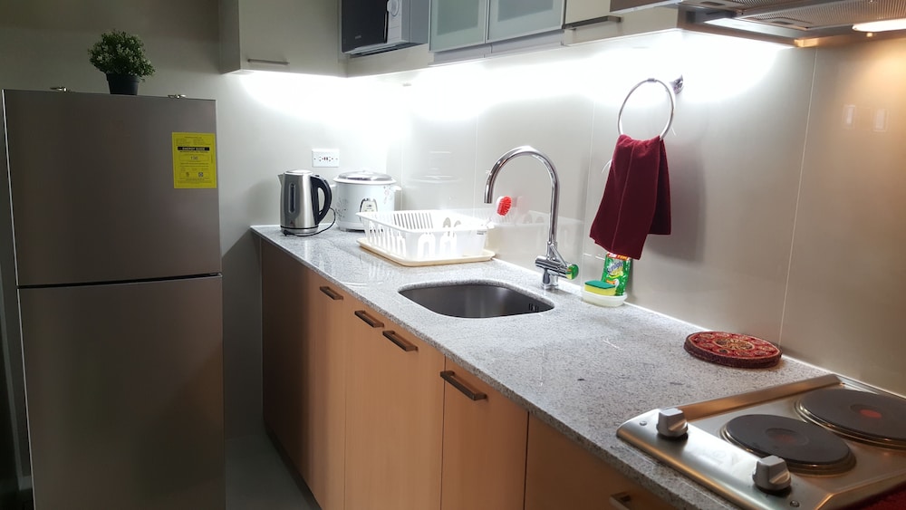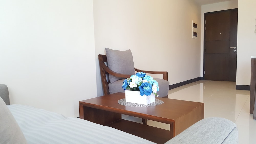 3泊4日お世話に成りました。初日のチェックインは私の名前がエクスペディアよりその建物Dの受付に予約確約の登録無く英語バージョンのペーパーを渡しましたがA~Cの受付に行ったり来たりしてトラブルで大変でしたが先にチェックインしてた友達が入場する時に契約書を手続きするママさんを呼んでくれて何とかC棟5Jのルームを確保して案内して貰いました。調理の道具や器が揃っているの家族で現地の食材を調達して料理を食べるには困りません。室内は60㎡と広く洗面バスタブ・トイレ・キッチン・テーブル・ベットルームに分かれています。只、無料の水ボトルやティシュ・タオルの予備・スッティクコーヒー・手ぬぐいやスリッパなどのサービスはホテルと違い日本から準備して来たので不便なく何とか過ごせました。良い点はb周りにコンビニ・スパー・ドラックストア・日本料理の店がすぐそばに有り便利でした。