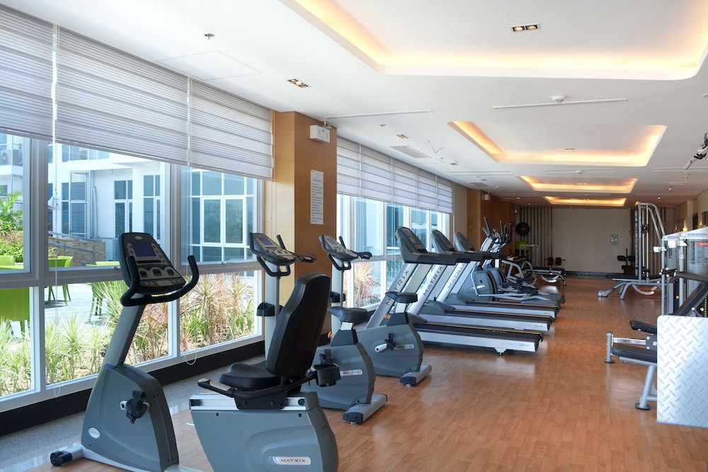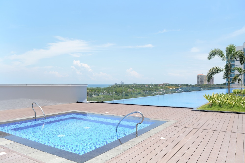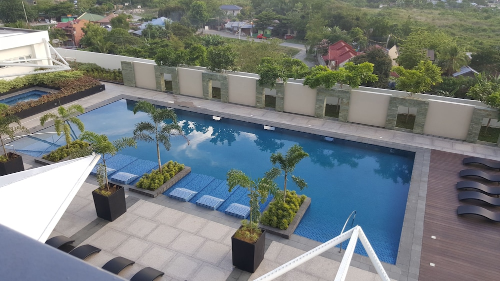 空港からタクシーで15分くらいのマクタンニュータウンにあり5階にプールが