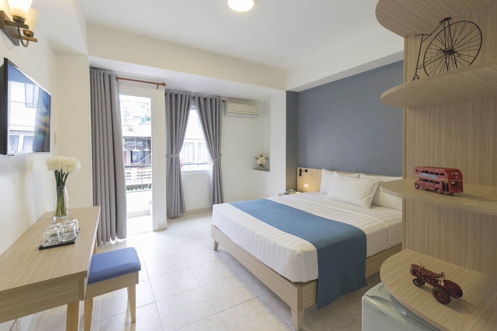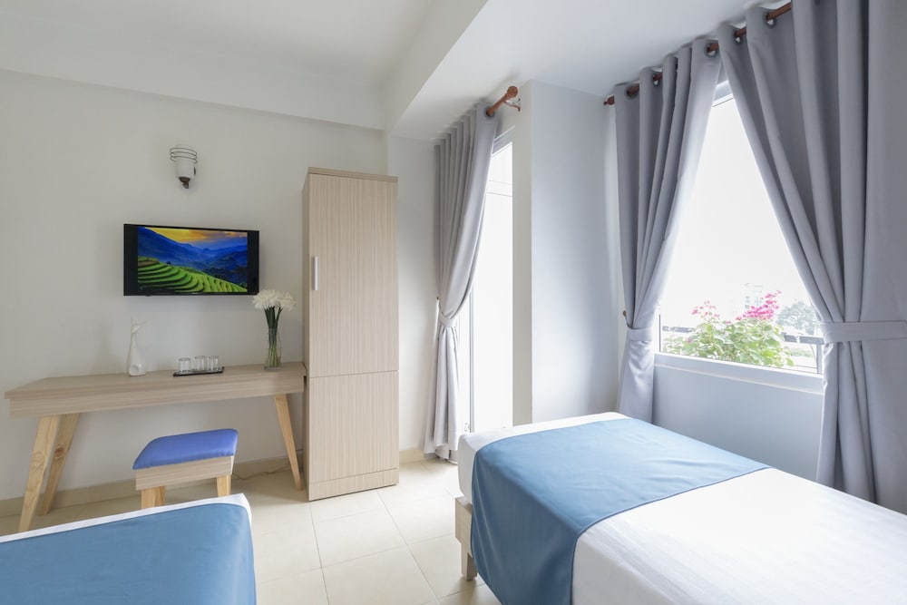 立地良し。部屋は清潔。毎日掃除してくれるしベッドメイキングをしてくれる。アメニティはすべてありました。ミネラルウォーターは毎日支給あり、タクシーはすぐに手配してくれます。スタッフは丁寧に対応してくれます。エアコンも良し。シャワーの出も良い。朝食は8階のオープンテラスで食べました。ベトナムに来たらまた泊まります。