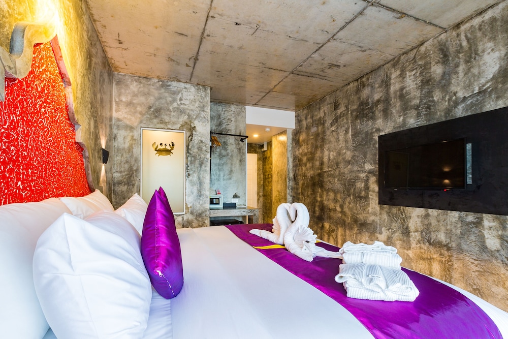 This hotel was little disappointing. I loved the direct entry from our room to the pool, but the room was poorly designed. There was no room to put anything anywhere so we had to keep stuff in our suitcases and on the floor. Bathroom was even worse, no space for toiletries. We had to ask for toilet paper every day as the teeny tiny rolls last only half a day and they did not put any extra. They use tall glasses with very heavy bottom which they turn upside down. Slight move of the tray and the glass toppled over, and broke for which they charge you. It's a very expensive glass. Make sure you turn the glass with the heavy bottom the right side up. This is the quiet side of Ao Nang beach which I liked. Our stay was OK, but I don't think I would stay again due to the lack of furniture/storage space in the room.