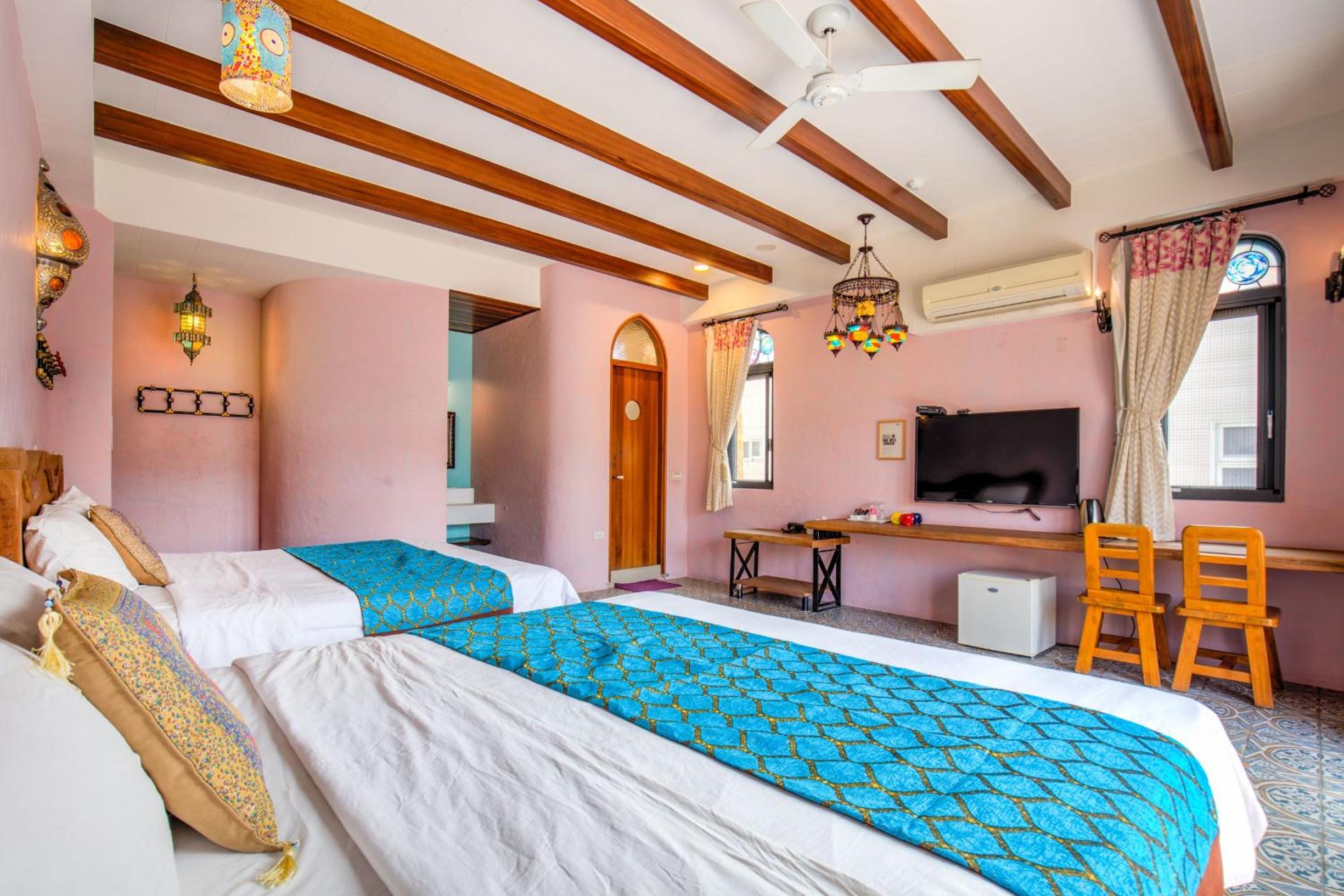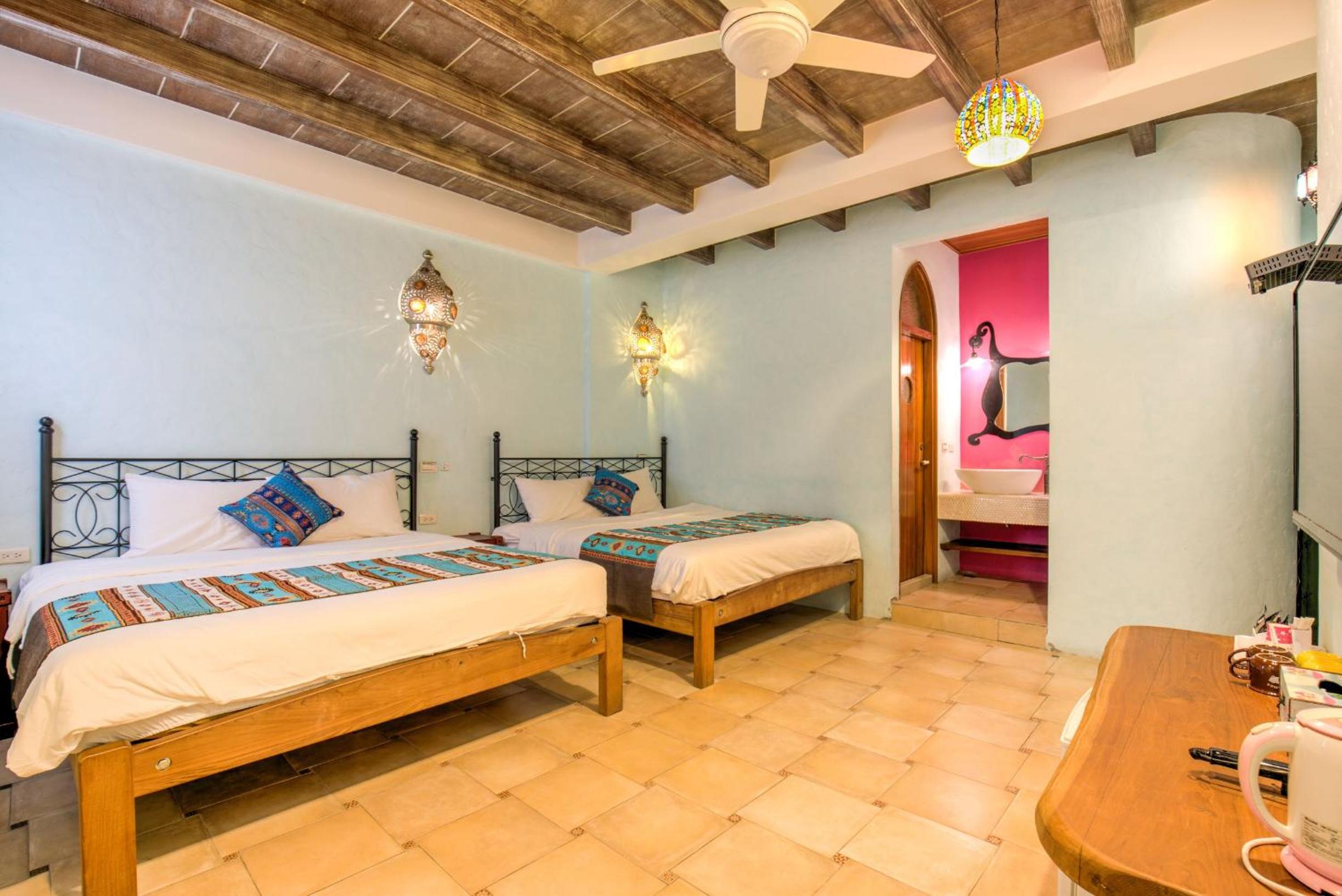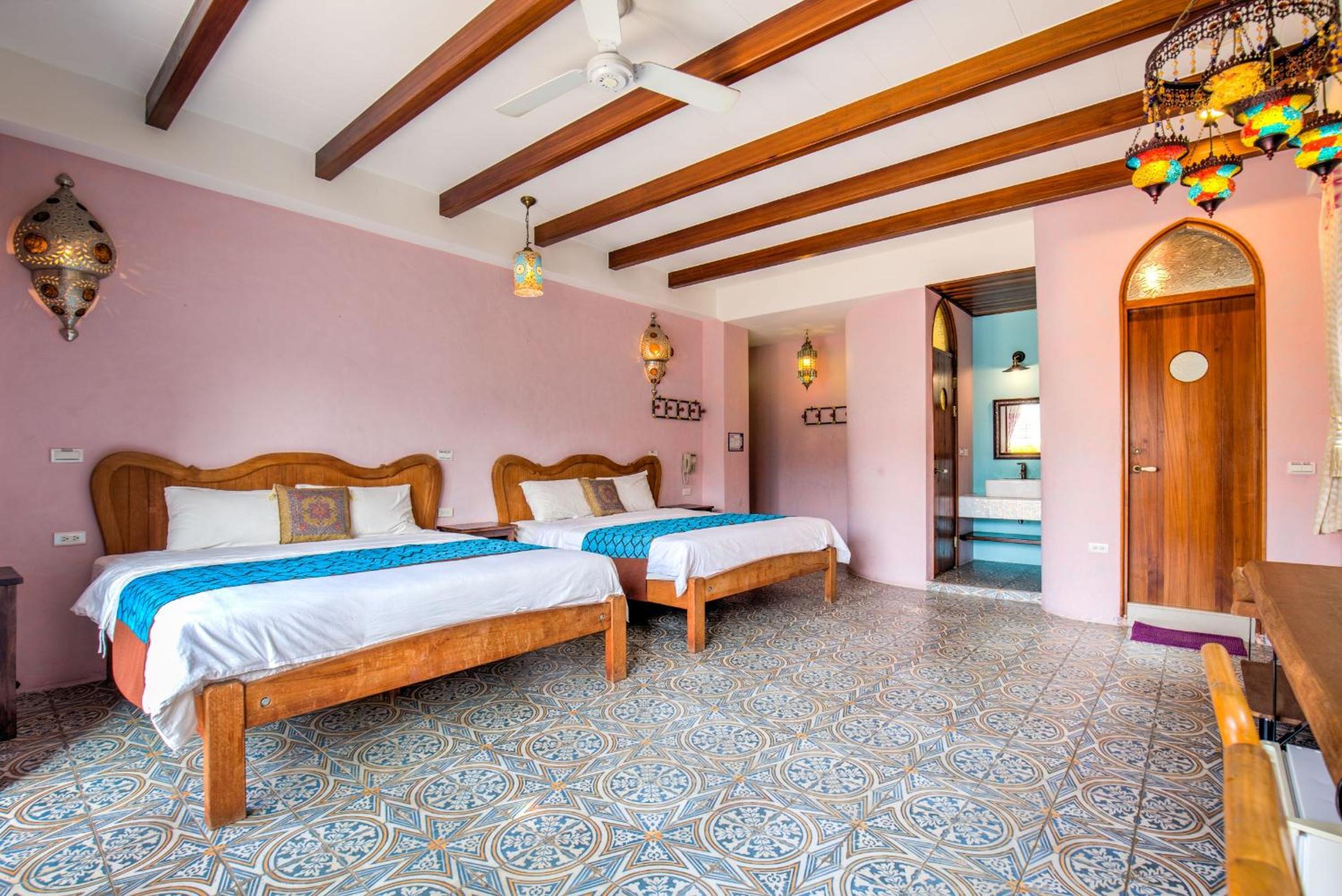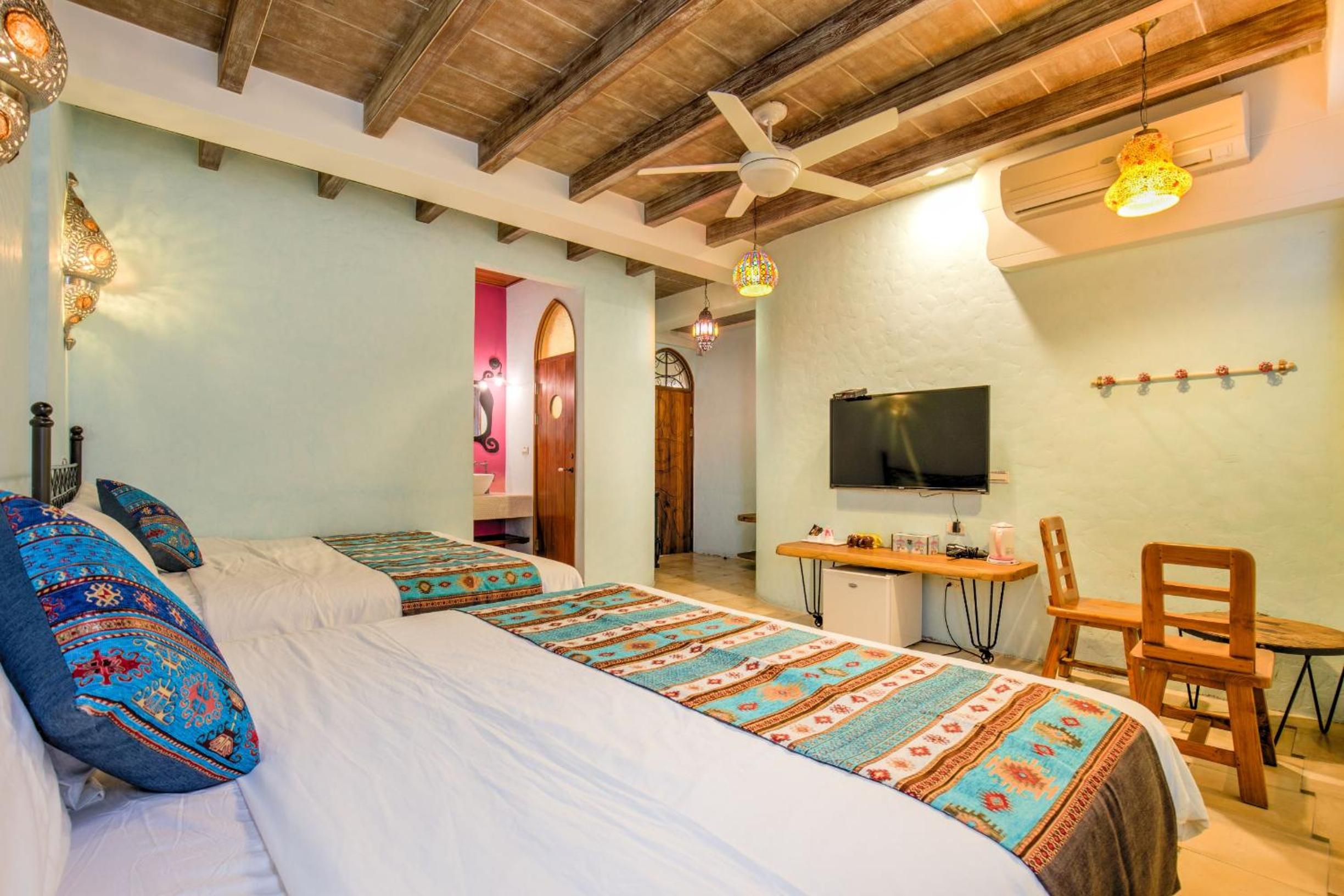 位置近觀光碼頭,房間寬敞空調舒適,床鋪枕頭軟硬適中支撐力好。旅店有很棒的設計風格,房間內吊燈與地磚都很美麗。且退房後仍可寄放行李於大廳,作為一個休憩點。