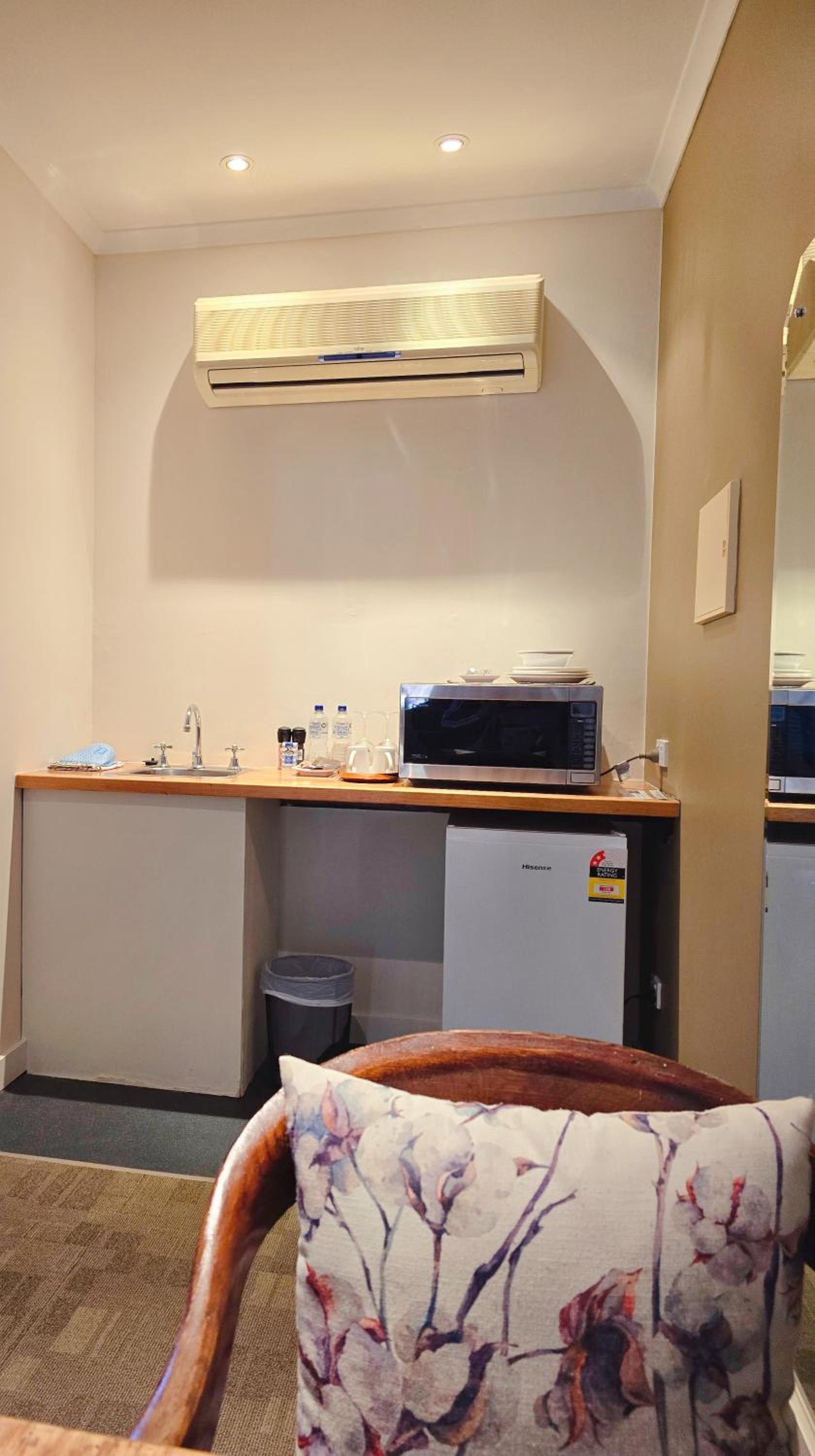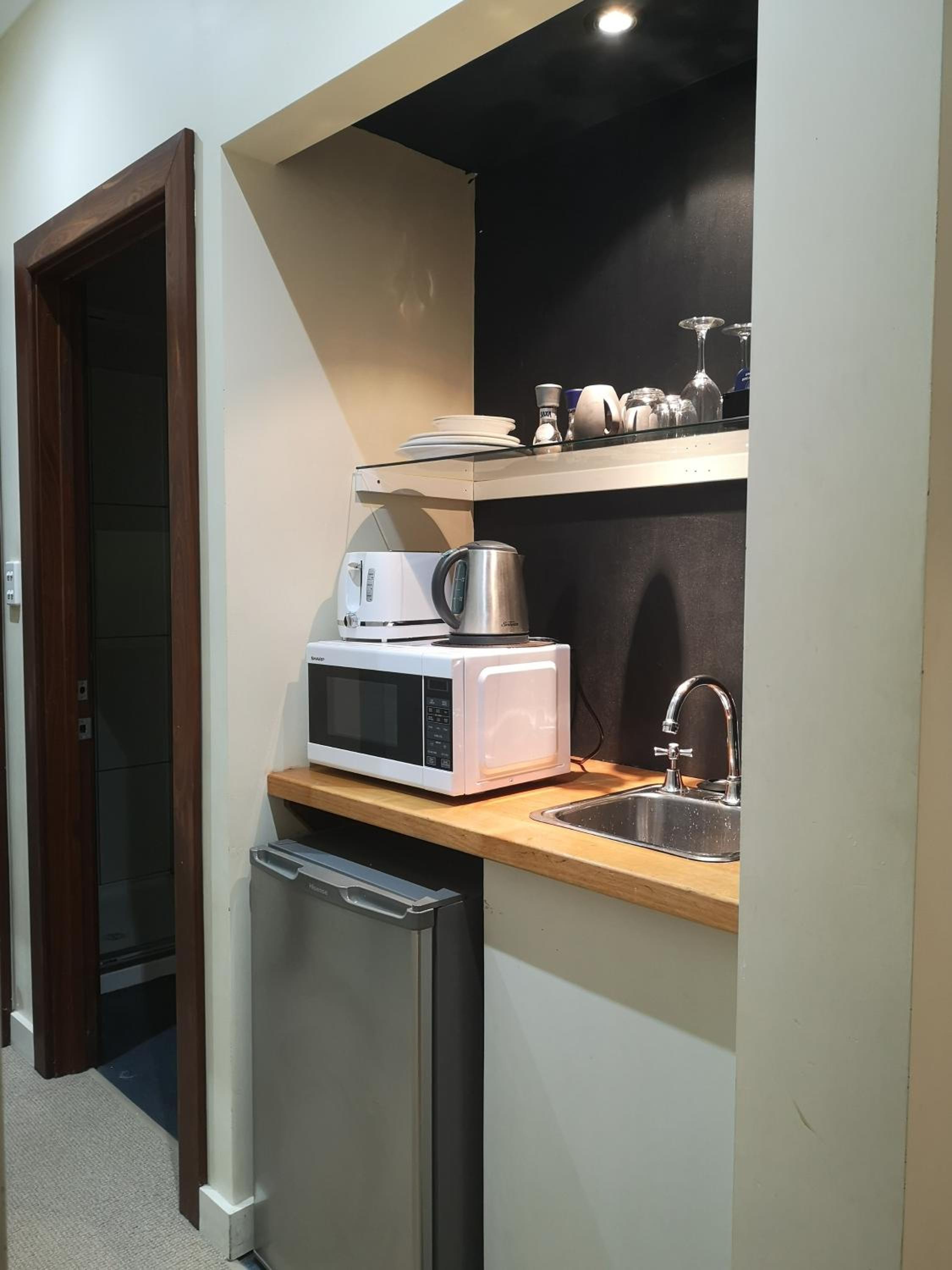 Due to previous guests likely using the bathroom sink water in the kettle rather than bottled water, the kettle needed a clean before I was happy to drink from it. but luckily the accomodation already provided cleaning products in the room we could use.