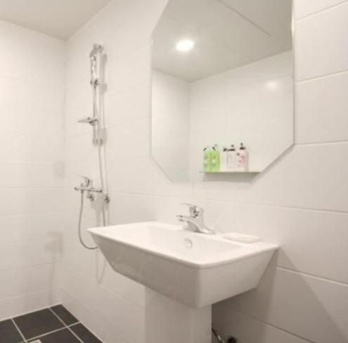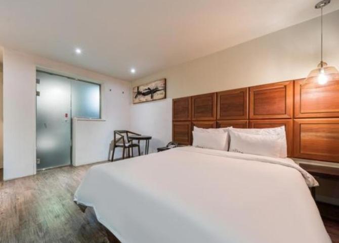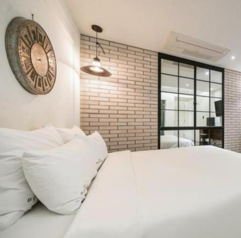 Generelt var der meget beskidt på værelset; støvet, håndtryk på væggene og i loftet, indelukket lugt e.g. Der var generelt en ubehagelig atmosfære og det virkede mere som et sted man kommer hen for at købe s*x. Derudover skriver booking.com at vi kunne check-in kl 16.00 på hotellet sagde de kl 17.00. Da vi kom kl 16.00 sagde de at vi godt kunne checke in hvis vi betalte ekstra (10.000 Won) hvilket vil sige at værelset var klar, men de bare ville have os til at betale ekstra... Der var også meget lyt og vi kunne høre folk larme og skrige om natten. Desuden var der en kakerlak på vores værelse.