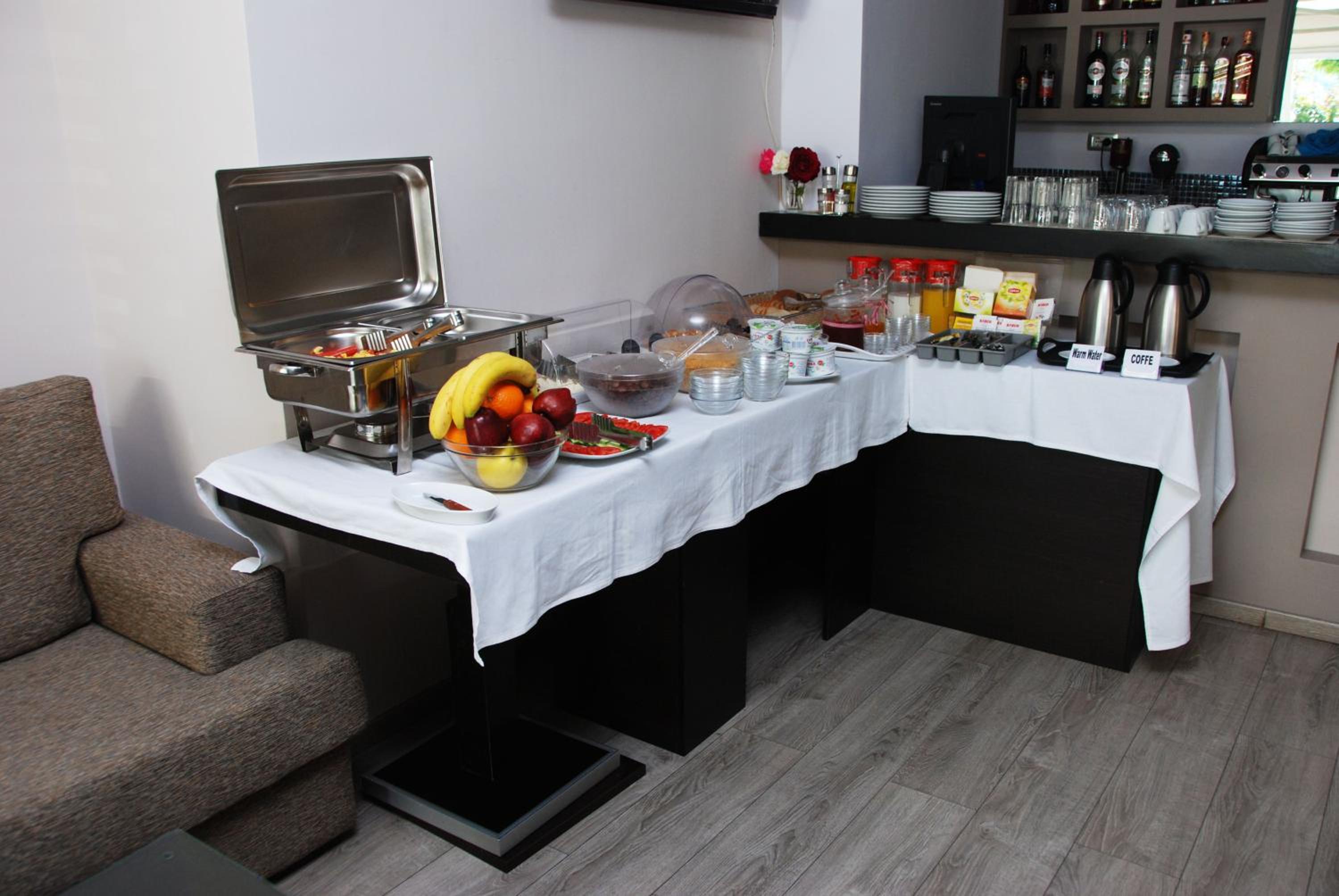Hier gibt es ein Frühstücksbuffet, herrlich. Man muss sich nicht mit Tomaten, Gurken und anderem rumschlagen, was man am morgen nicht braucht. Nur wenige min zum Zentrum an der Hafenmole, viele Restaurants, man hat die Qual der Wahl...
