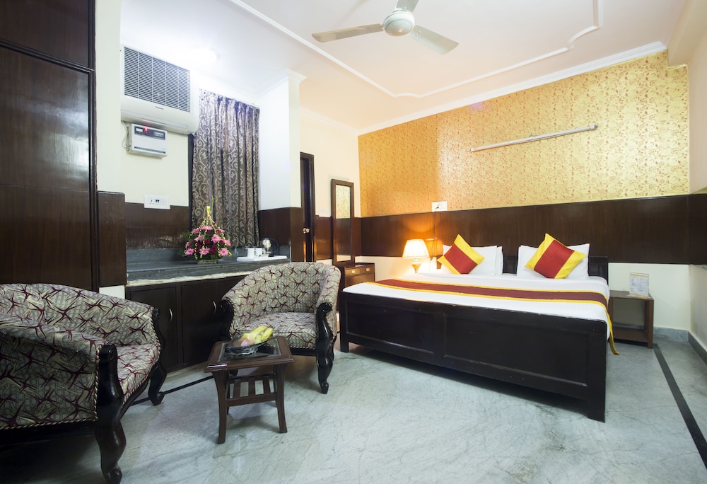 Overnight stay. With one flight arriving late in the evening, and our onward trip early the next morning, we wanted somewhere to get a few hours sleep. Transfers to/from the airport were arranged with no fuss, and the reception staff were friendly and helpful. Room was basic, and is not recommended as a place to stay to explore Delhi, but OK for a cheap overnight stopover.