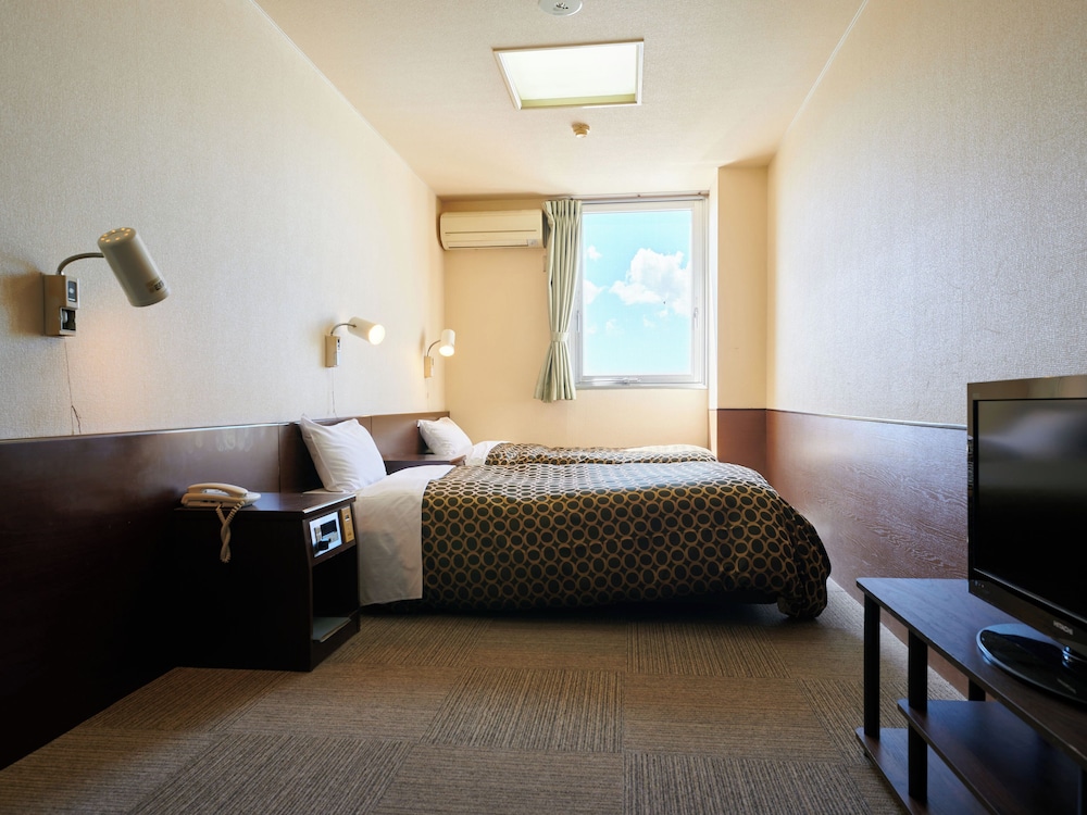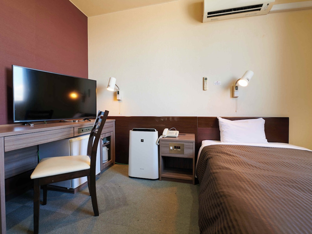 部屋は一般的なビジネスホテル。テレビの位置が高い部屋もある。トイレはウォシュレット対応。