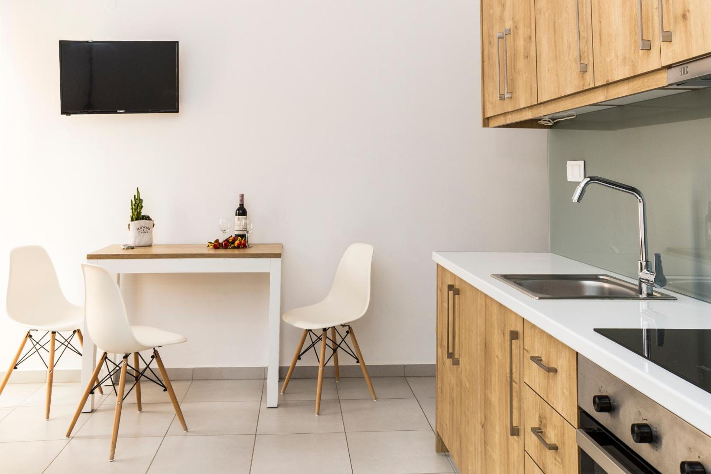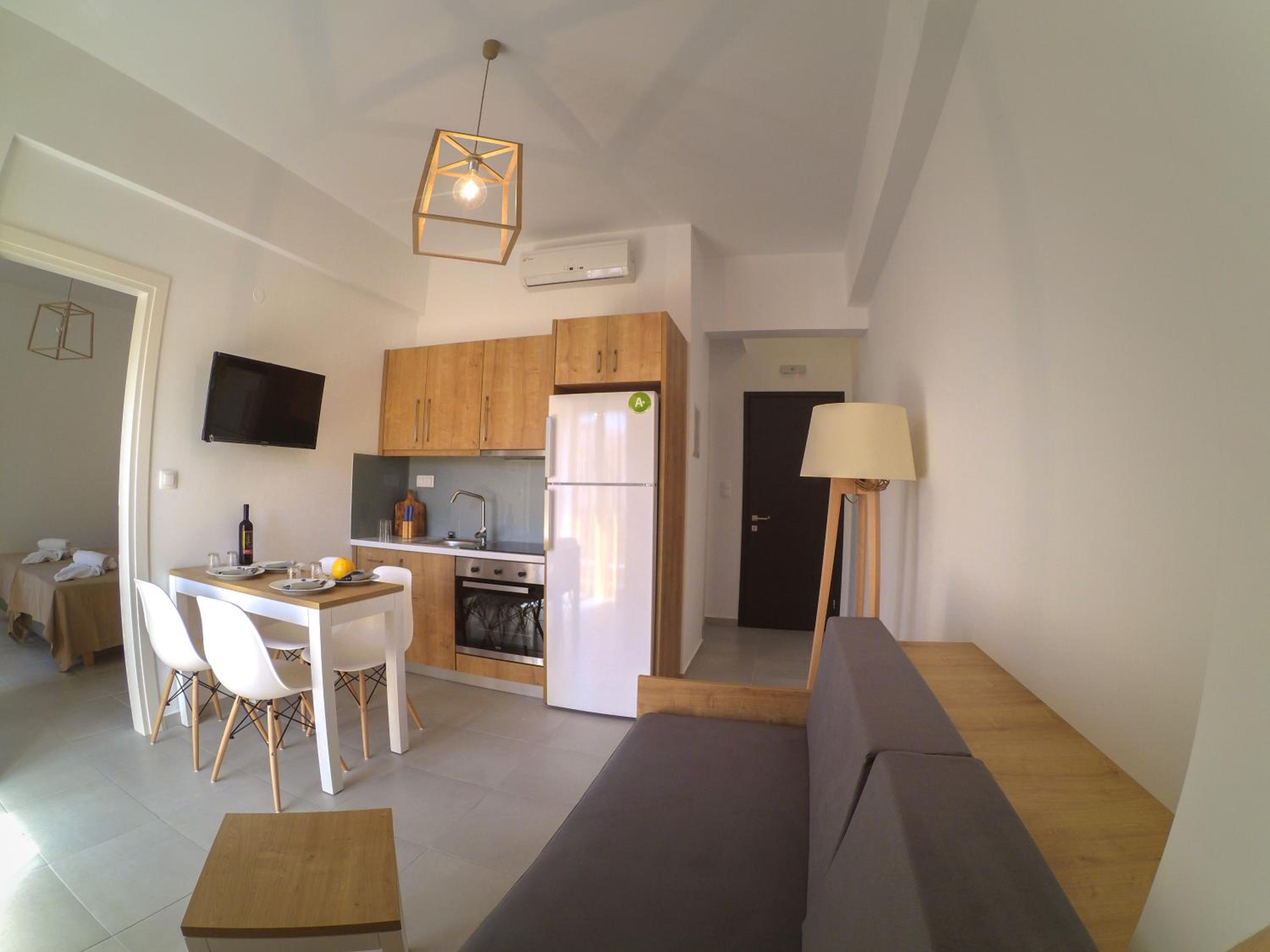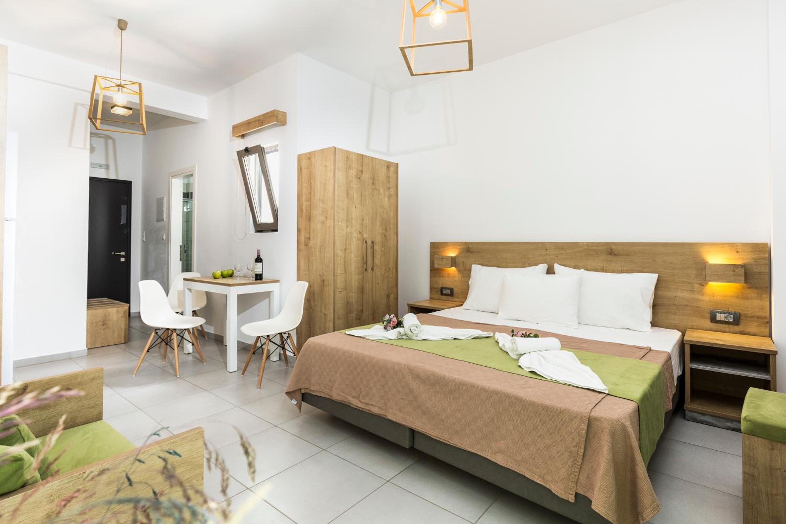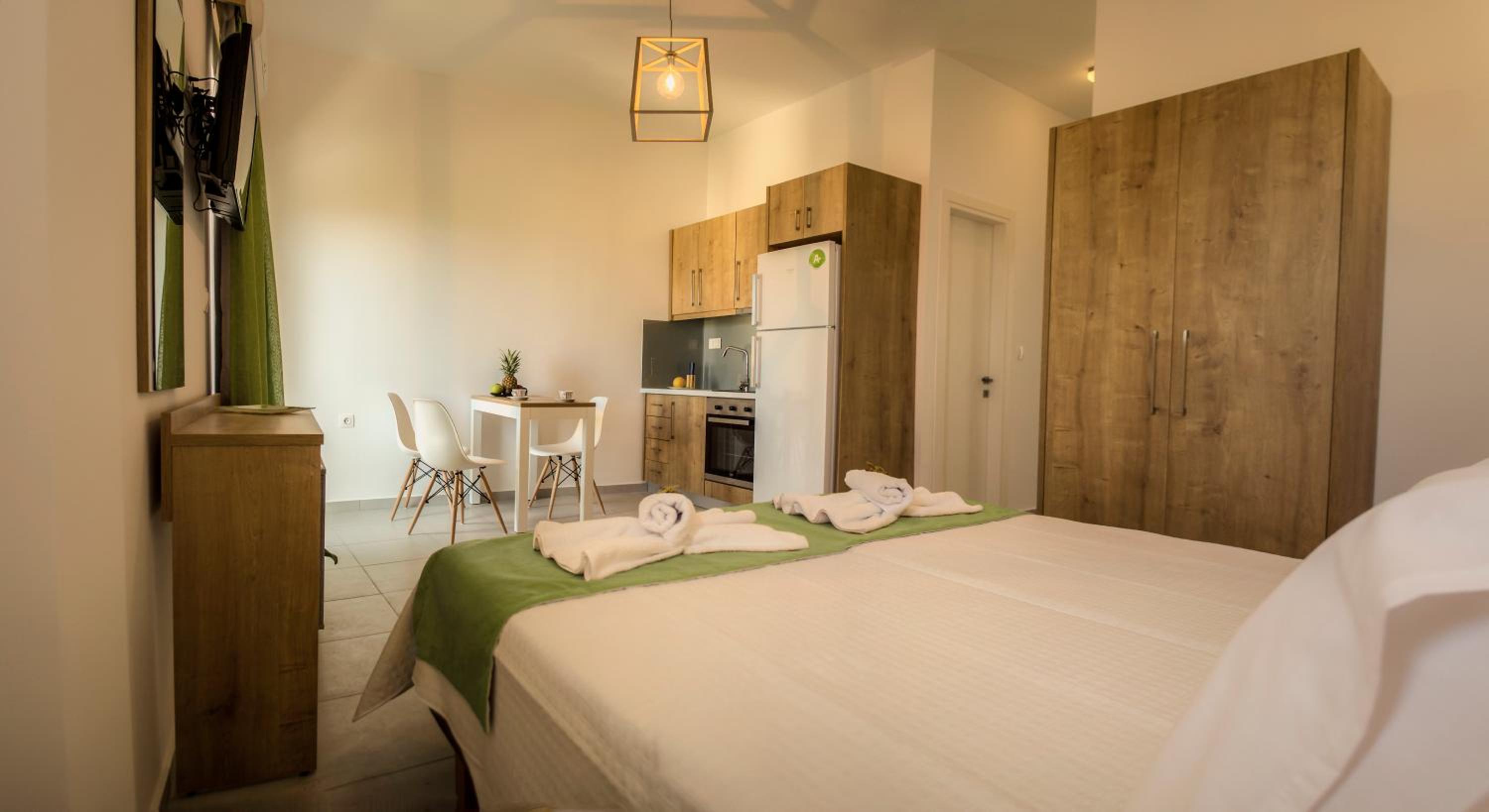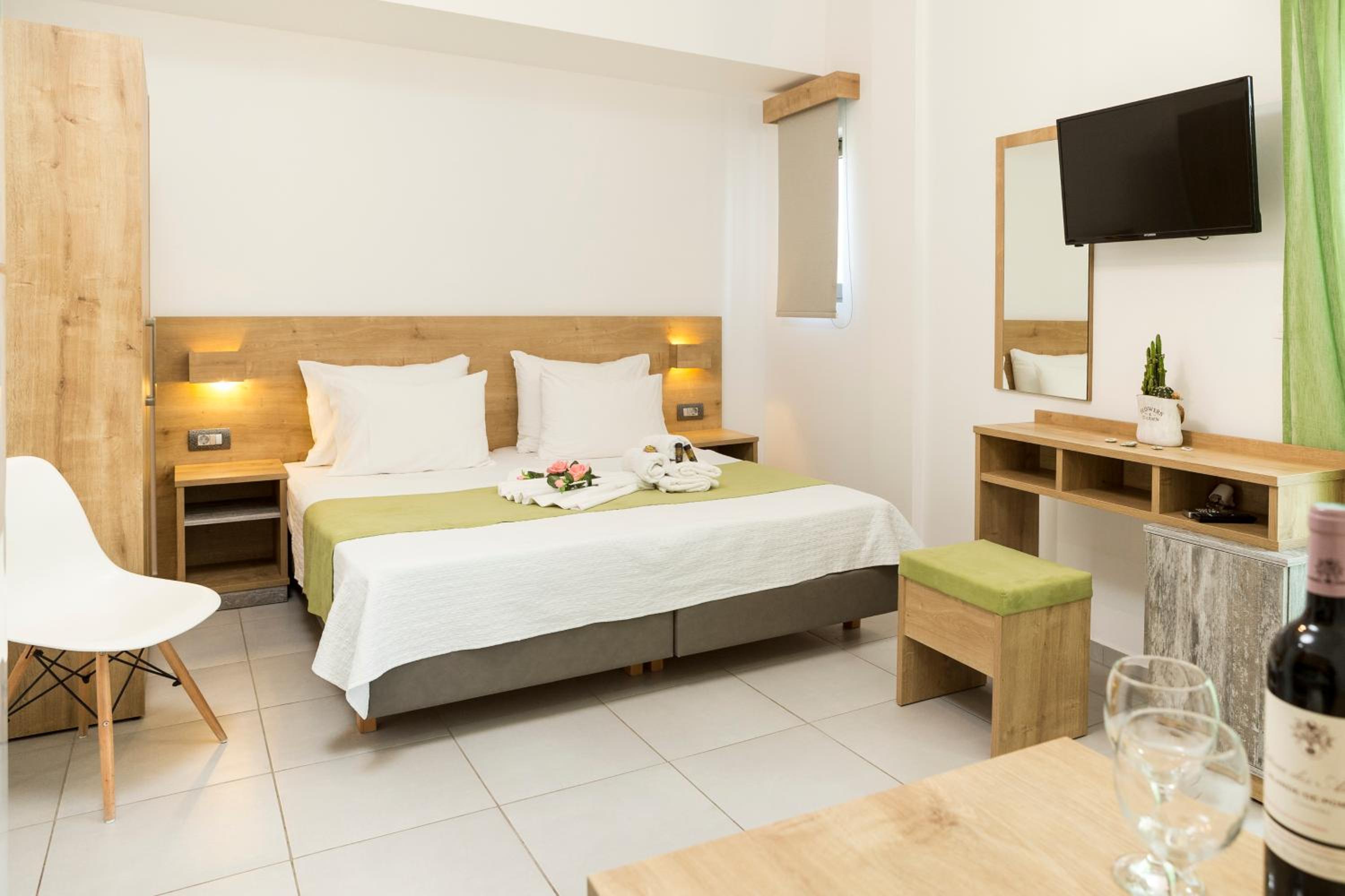 The hotel is situated in the center of Kissamos where the activity is really nice at night. Rooms are functional and very clean. No breakfast is provided but you can have coffee and drinks any time in the lobby as well as fruits and other snacks. Also very good coffees on the seaside 5 minutes walk from the hotel propose breakfasts.