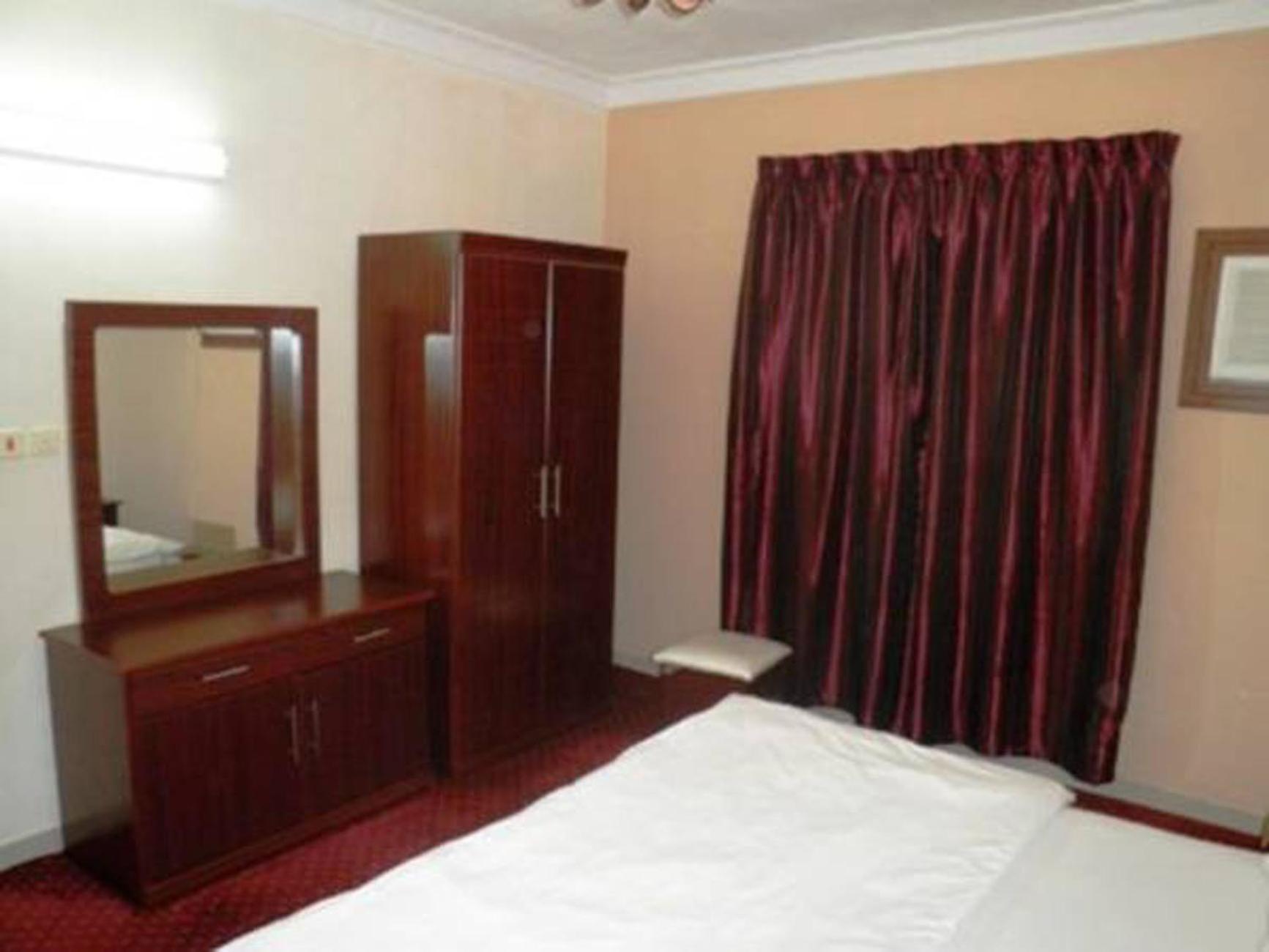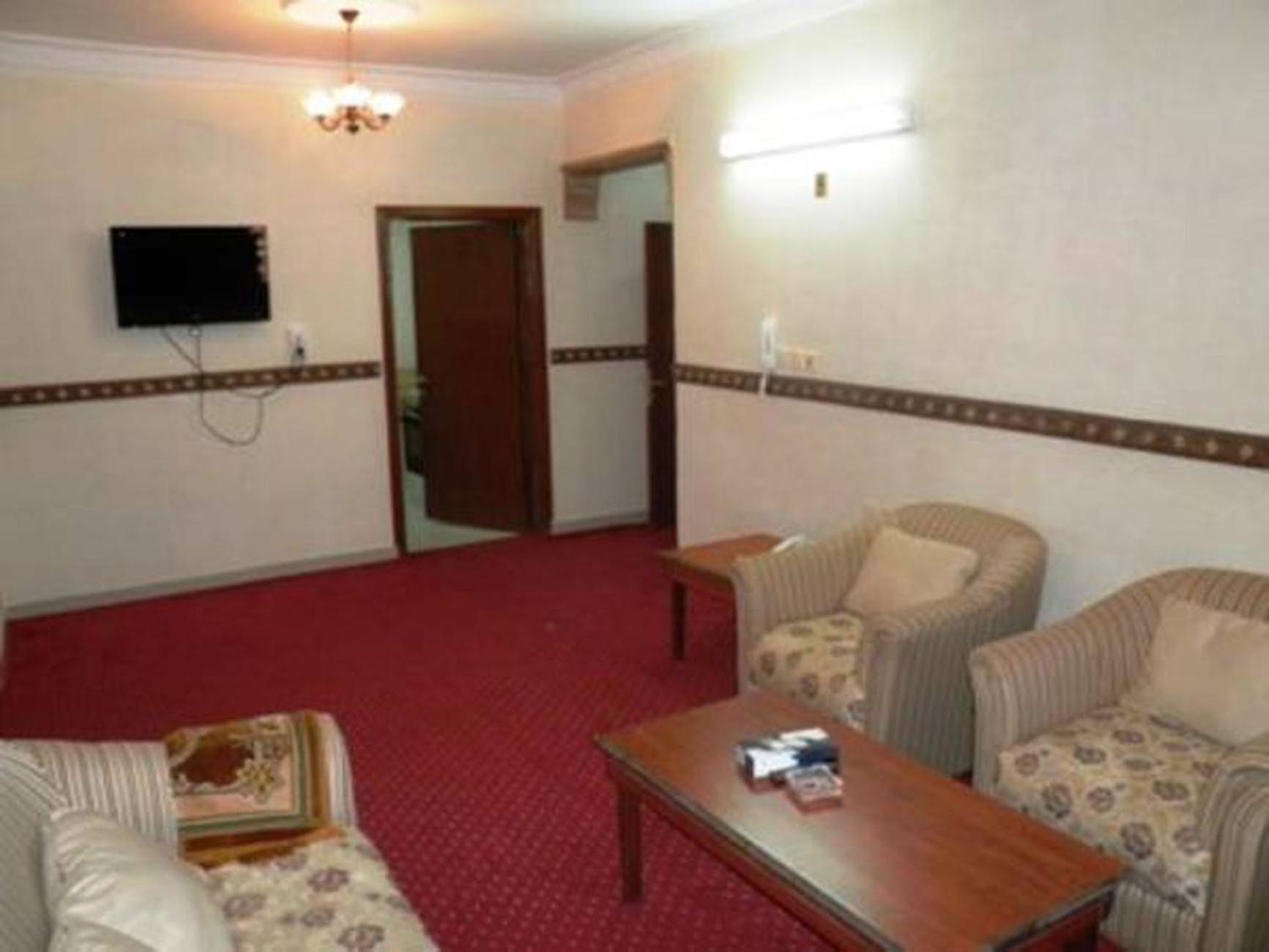 Al Farhan Hotel Suites (Al Salam) offers spacious and air-conditioned rooms and apartments with free Wi-Fi, providing a comfortable stay for guests. The simply furnished accommodations, decorated in cream and red hues, feature carpeted floors and wooden furniture, ensuring a cozy atmosphere.
