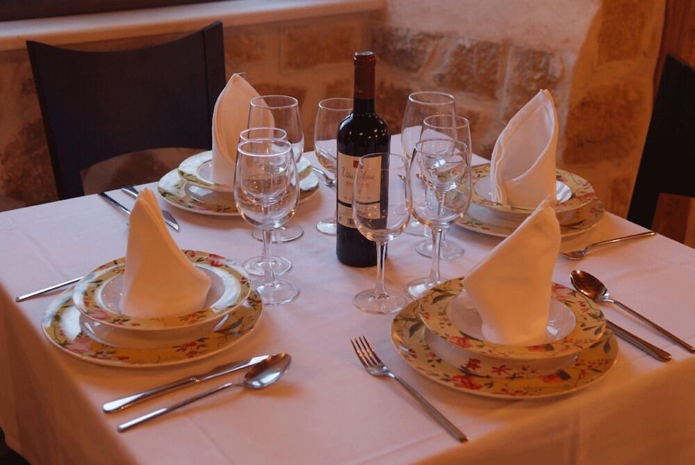 Well restored ancient lodging on Camino saint jaques in crumbling small village. Clean, everything you need,. Well appointed restaurant with simple menu. Various platos combinados, say chicken leg, peppers, chips and a good salad, incl desert, (flan, ice-cream, fruit), bread, water, cheese at start 9 euros. 15 euro you get a starter - brocolli soup is good and wine. Various breakfast options. Set breakfast is 5 euro. Plate of ham cheese sausages with toast coffee / chocolate jams butter. More than enough. The lady who checked us in, cooked and served dinner, breakfast was laid out for us, and she checked us out. Quietly getting on with all these functions for us and others all at the same time - just her !! Very efficient, unflustered and friendly. Pool is big enough and welcome before dinner after 11h in car. You can eat when you like between c19-22 and 07-10. We pre-ordered for 1930 and 0730 which worked well. We were on the road at 0750 feeling well rested, fed and ready for the day. A good stopover en route uk-portugal,. And for those doing the Camino del SJ which passes 150 metres away. Well stay here again. Much more interesting than new hotels in towns/cities.