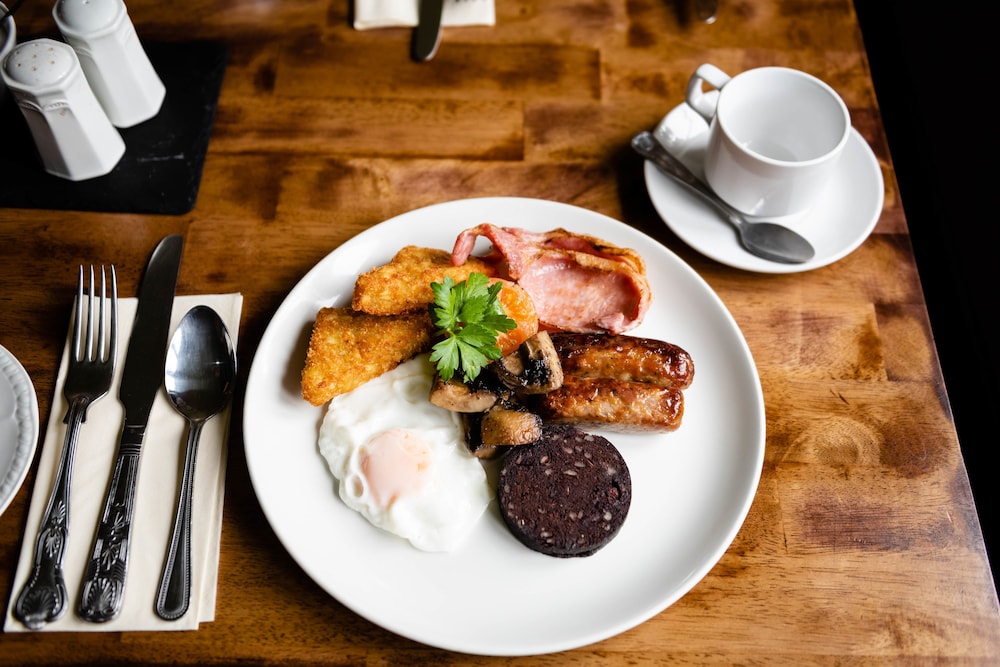 We stayed just the one night as a stopover. We never ate at the hotel so can’t comment on that. We were 3 adults who booked the family room, which was very spacious & beds very comfortable. Unfortunately only 2 mugs & 1 packet of biscuits were provided with the tea & coffee. It was a very warm day & a fan was available in room, which was a blessing. The only downside was we had to close the windows as a wedding bash was in full flow & the band & loud music kept us awake until well after midnight. Cannot fault the room, apart from these little niggles & the location of the room being so close to the function room/rooms. Imagine it’s quite noisy most weekends.