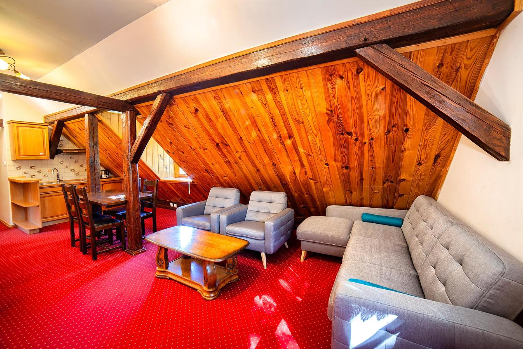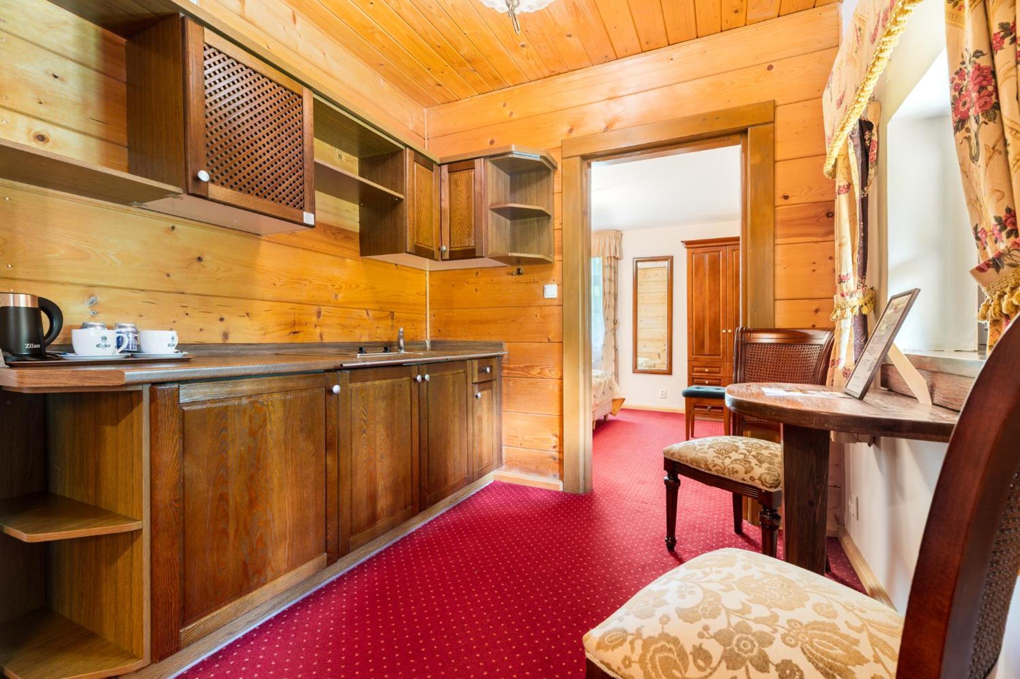 Hotel Dworek Wapionka offers 3-star apartments with a fully equipped kitchenette, free Wi-Fi, and satellite TV. Enjoy the convenience of a refrigerator, electric kettle, and kitchenware, ensuring a comfortable stay.