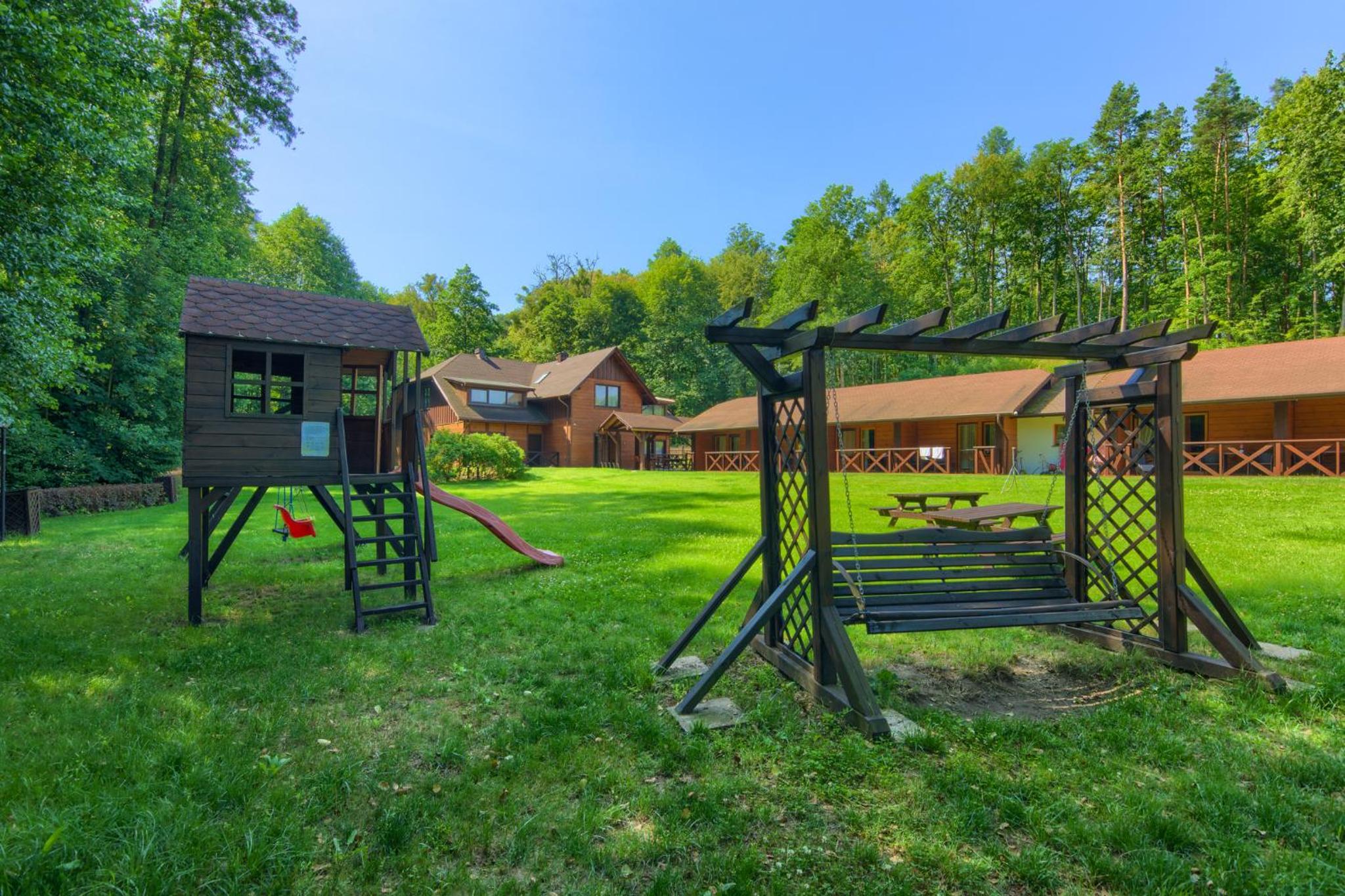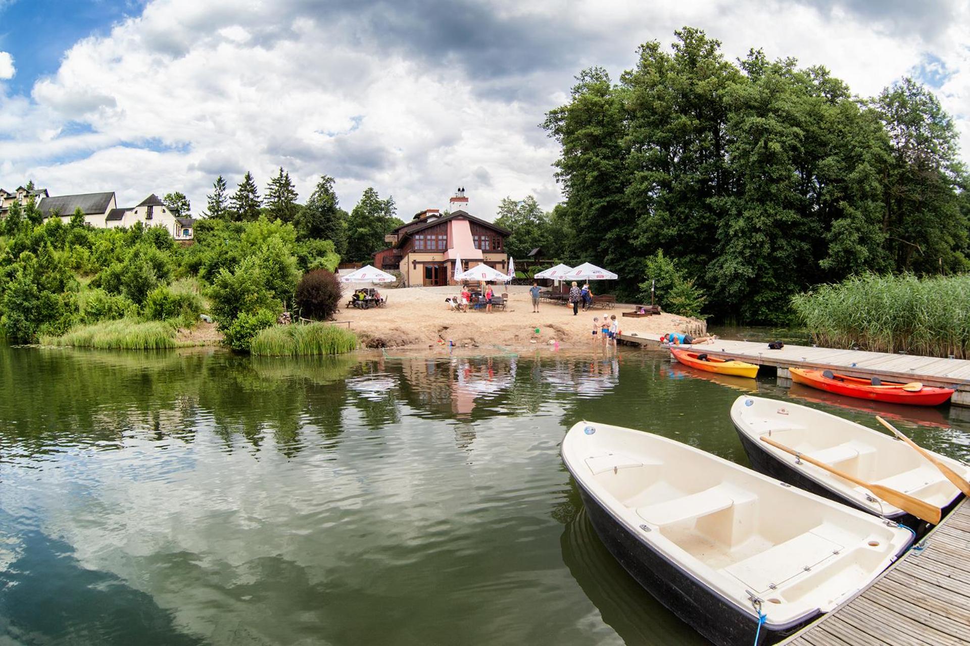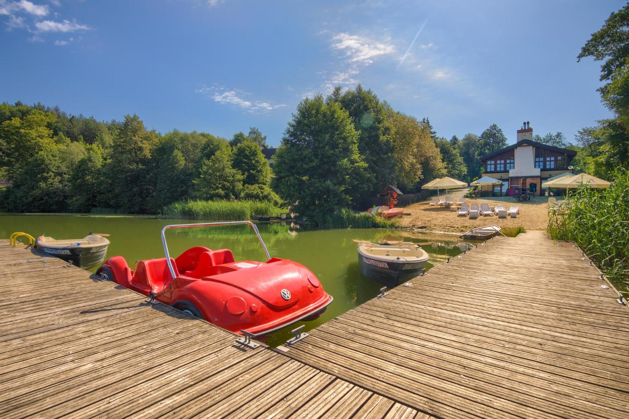 Experience a tranquil getaway at the Wapionka complex, featuring a private 2-hectare lake for fishing, a private beach with a deck, and a grill site on a scenic peninsula. Relax by the water or indulge in outdoor activities.
