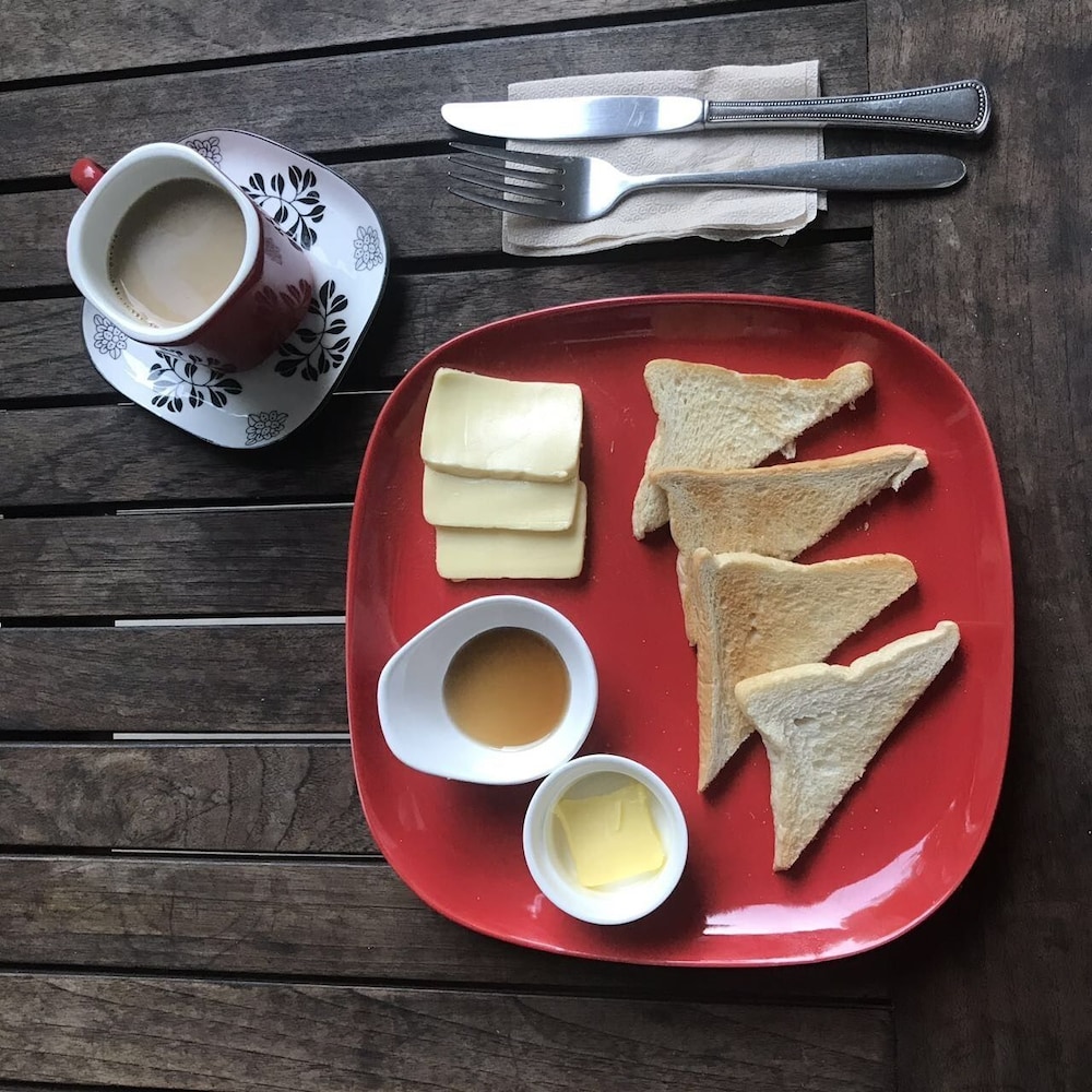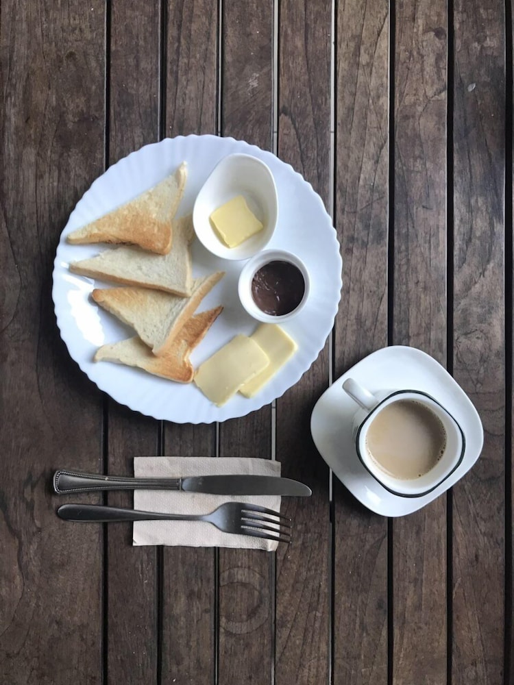 อาหารเช้าเป็นแบบเซ็ตเมนู แค่ขนมปัง + กาแฟ ชา