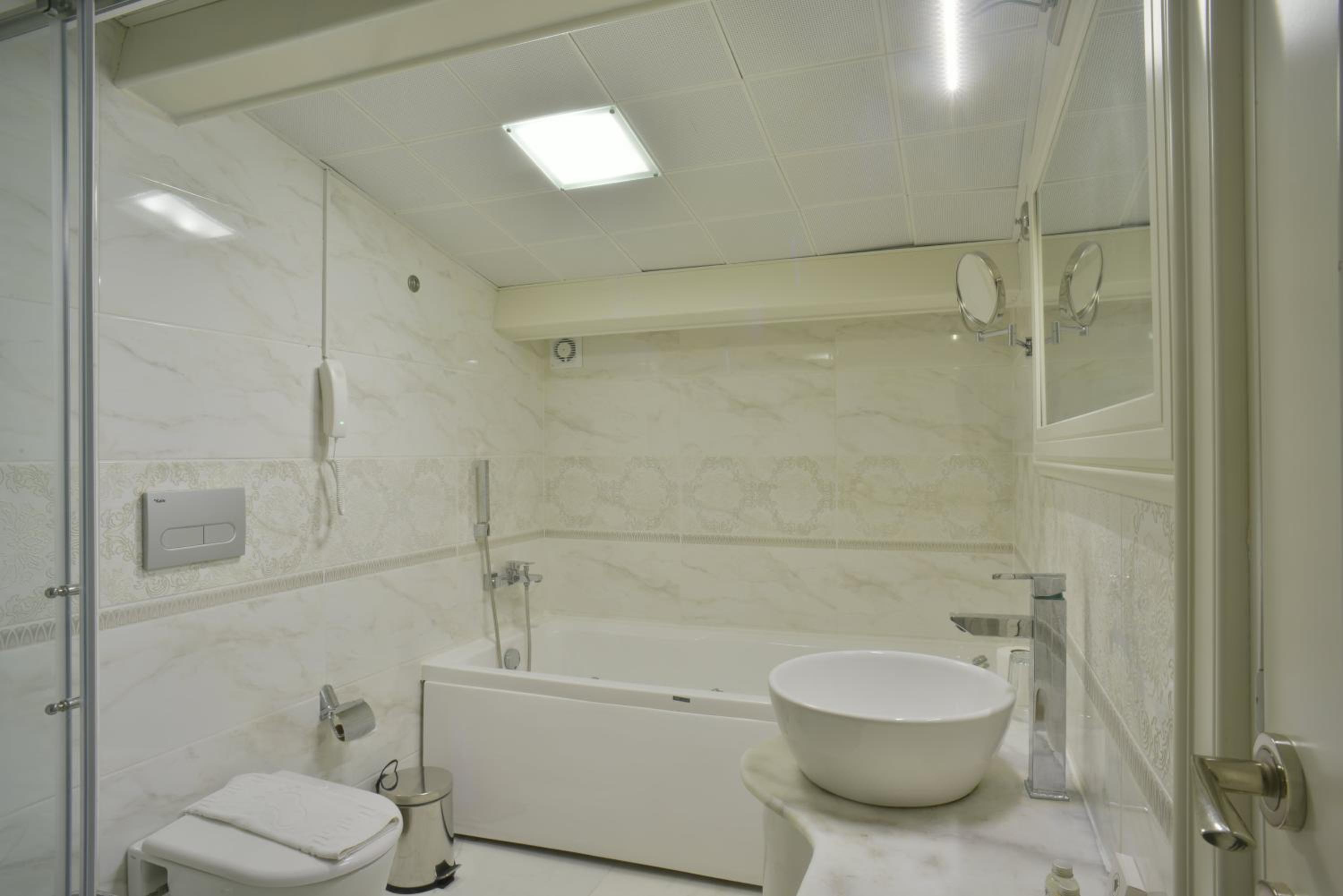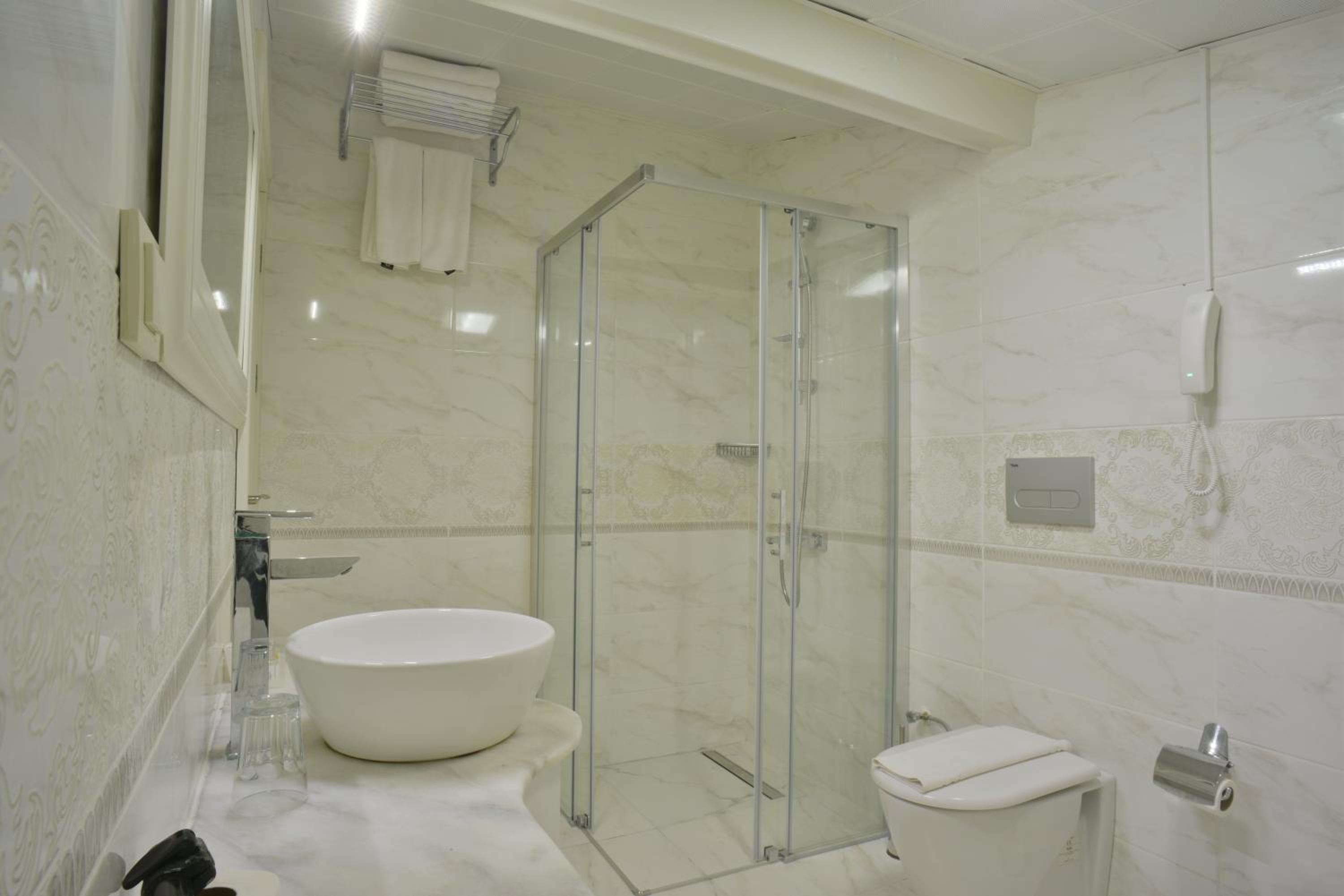 Ert omdöme som enastående har inget med verkligheten att göra. Rummet var så litet så det gick inte ens att röra sig två personer. Vi betalade 3000 turkiska extra för att byta rum. Det rummet var större men duschhandtaget trasigt och inga krokar för att hänga upp handdukar. Toalettsitsen borde ha bytts ut för länge sen. Sliten och alldeles gul. 3000 svenska kan man bo på mycket bra hotell i Istanbul.