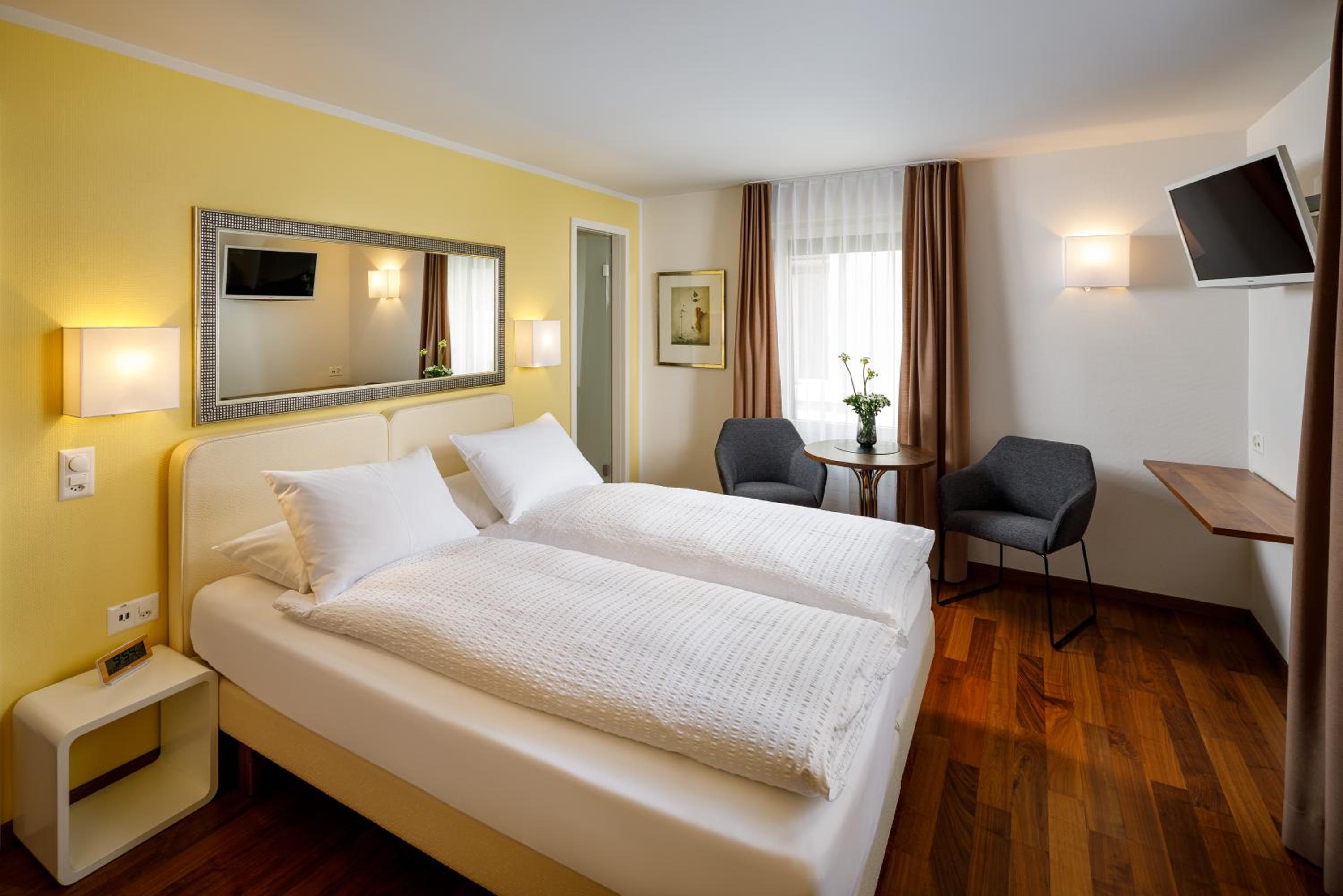 Modern Accommodation Options: Choose between stylish rooms or fully equipped self-catering apartments at Aparthotel Familie Hugenschmidt.