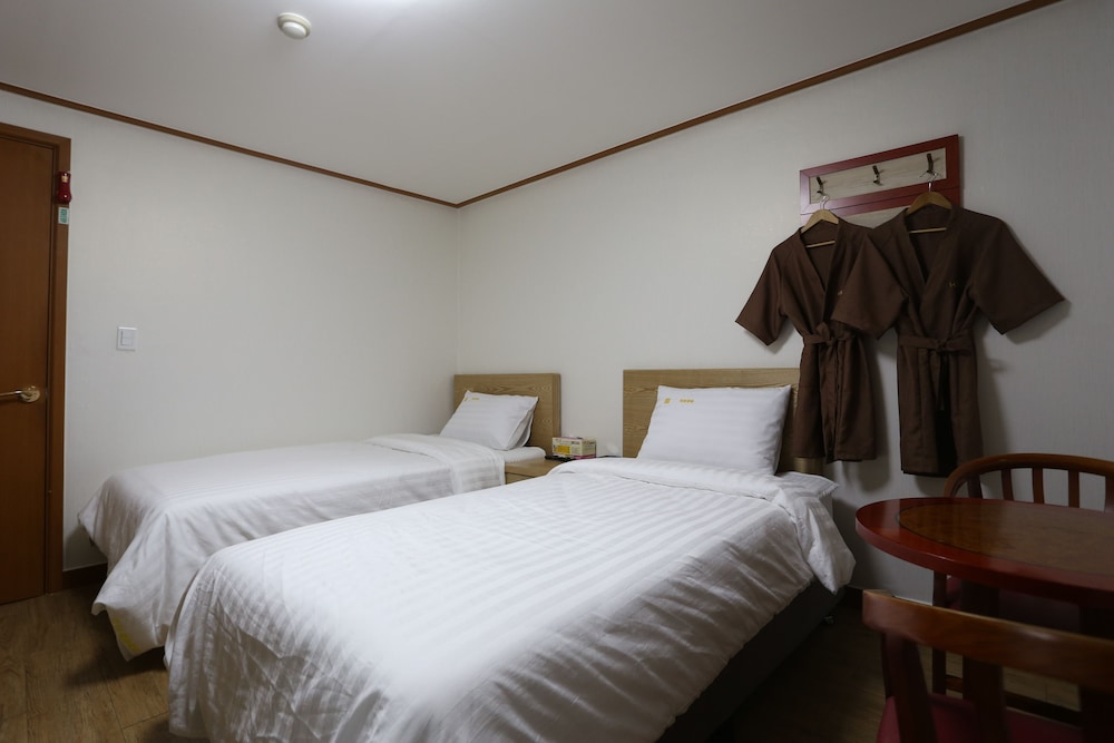 해돋이 보러 간다고 후기보고 급히 찾았는데 너무 괜찮아요- 오래되어도 정말 깨끗하게 정리된 룸 컨디션. 재방문 의사있어요. 아이들있어서 걱정했지만 가족여행으로도 좋았고 뒤편으로 전부 숙박업소가 모여있어 편의점 음식점이 다 있어요. 추천! 관리 잘하셔서 번창하세요.