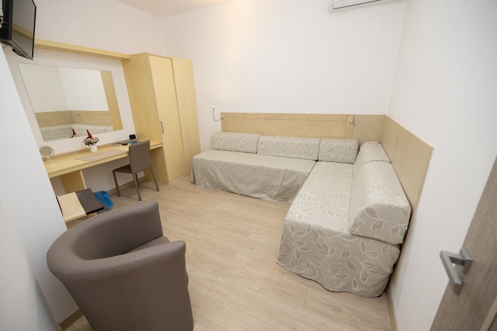 das war die dritte Station auf der Rundreise. Ich habe das Hotel (2 Zimmer) wegen den angepriesenen Ausblick auf das Meer gebucht. In der Reisebestätigung stand "Standard-Doppelzimmer, Balkon, Meerblick". Vielleicht stimmt das auch, wenn man in den oberen Etagen ist. Wir hatten die Zimmer 104 und 105 und die sind mehr als enttäuschend. Das Meer kann kann vielleicht zwischen den Bäumen erahnen, Sonne kam keine (kein Balkon vorhanden), nebenan ist die Küche oder Wäscherei, jedenfalls Lärm ab spätestens 7 Uhr. Wir haben nach zugesagten Zimmern gefragt, aber angeblich was das Hotel voll ausgebucht. Wenn man dazu nimmt, dass die Strassen zum Ort eine Katastrophe sind, im Ort nichts los ist, der Strand 10 Meter breit und eine Steinwüste war, dann war der Aufenthalt eine Enttäuschung und ich kann das Hotel nicht weiter empfehlen.