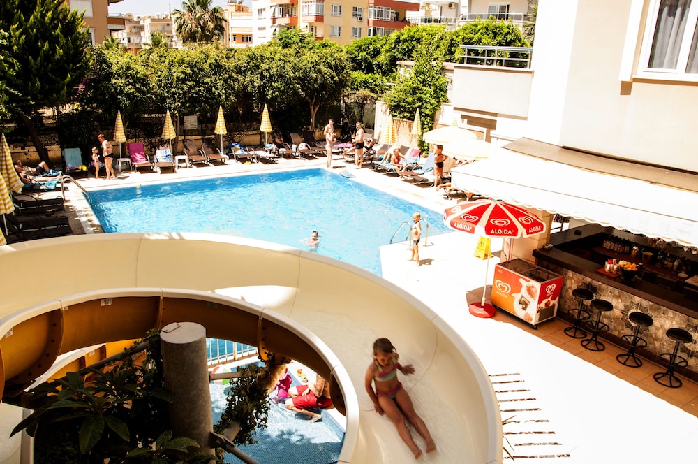 Çocuklu aile olarak oteli havuzu nedeniyle tercih ettik. Otel beklentimin üzerindeydi. İşletmeciler iyi insanlar. Hiç bir problem yaşamadık. Merkezi konumda marketlere çok yakın. Denize 15 dakika yürüme mesafesinde. Havuz temiz kaydırak zevkliydi.Klima yeniydi oda çarşaflar perdeler temizdi. Fiyatına göre çok iyi bir apart otel.