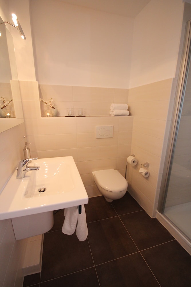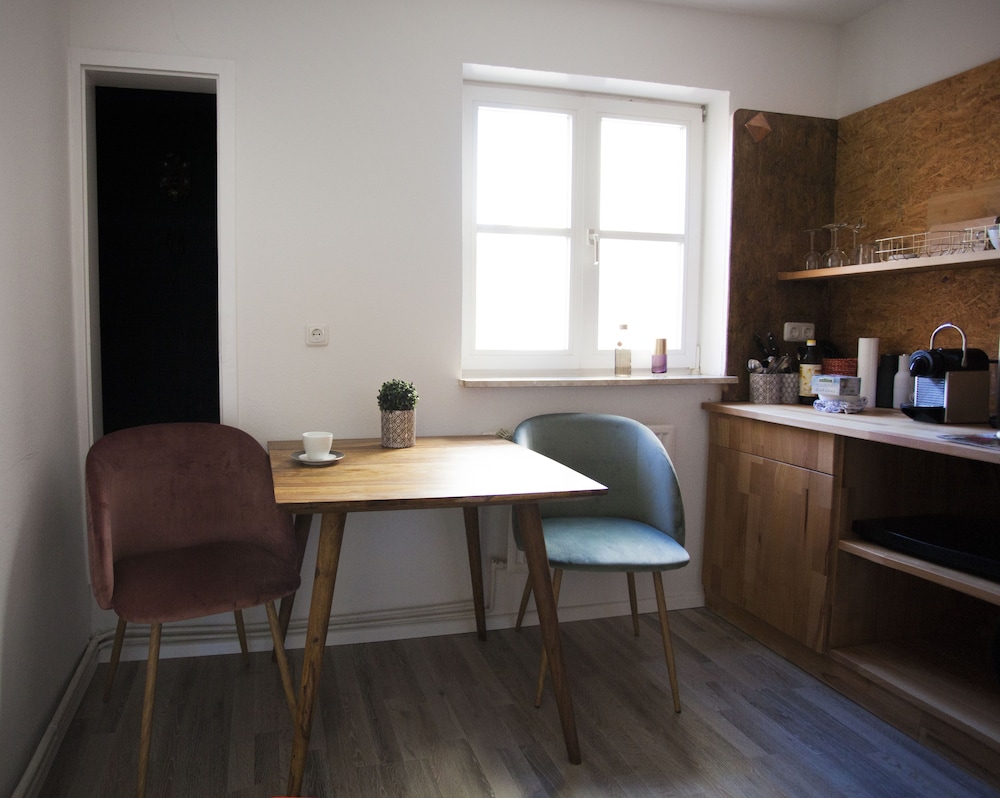 Hyggelig hotellejlighed, perfekt for 2 par. Vi købte morgenmad på hotellet, der manglede ingenting, det var super lækkert til kun 5 euro pr person. Hyggelig gårdhave. Snyd ikke jer selv for middag på deres restaurant Drei, som ligger 200 m fra selve hotellet. Både hotel og restaurant har super søde og imødekommende medarbejdere.
