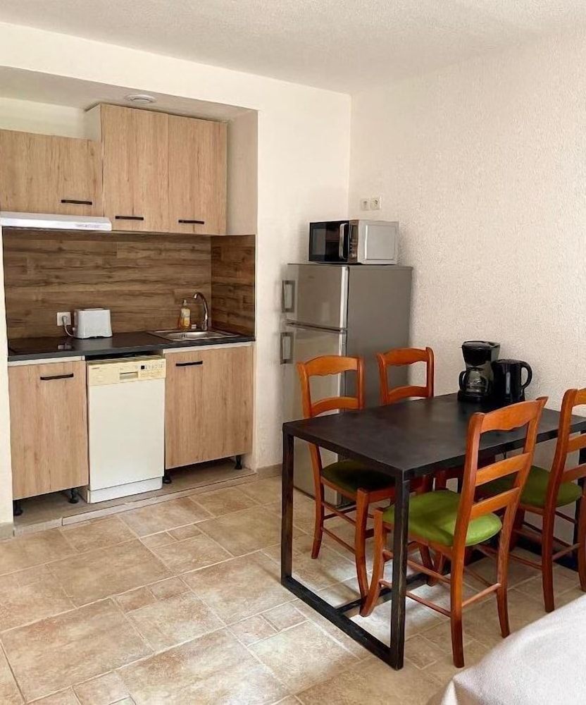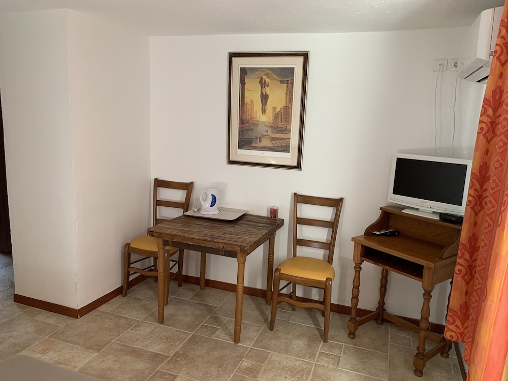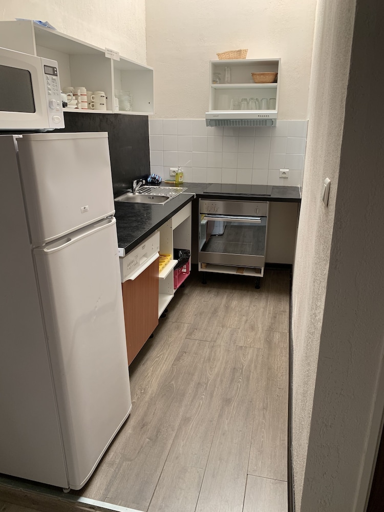 Appartement dans une vieille bâtisse , tout est vieux et vétuste :intérieur comme extérieur Toutes les choses indispensables dans un appart HOTEL sont en supplément : des draps , des serviettes , une bouilloire ... Sejour très cher en plus Fuyez !!!