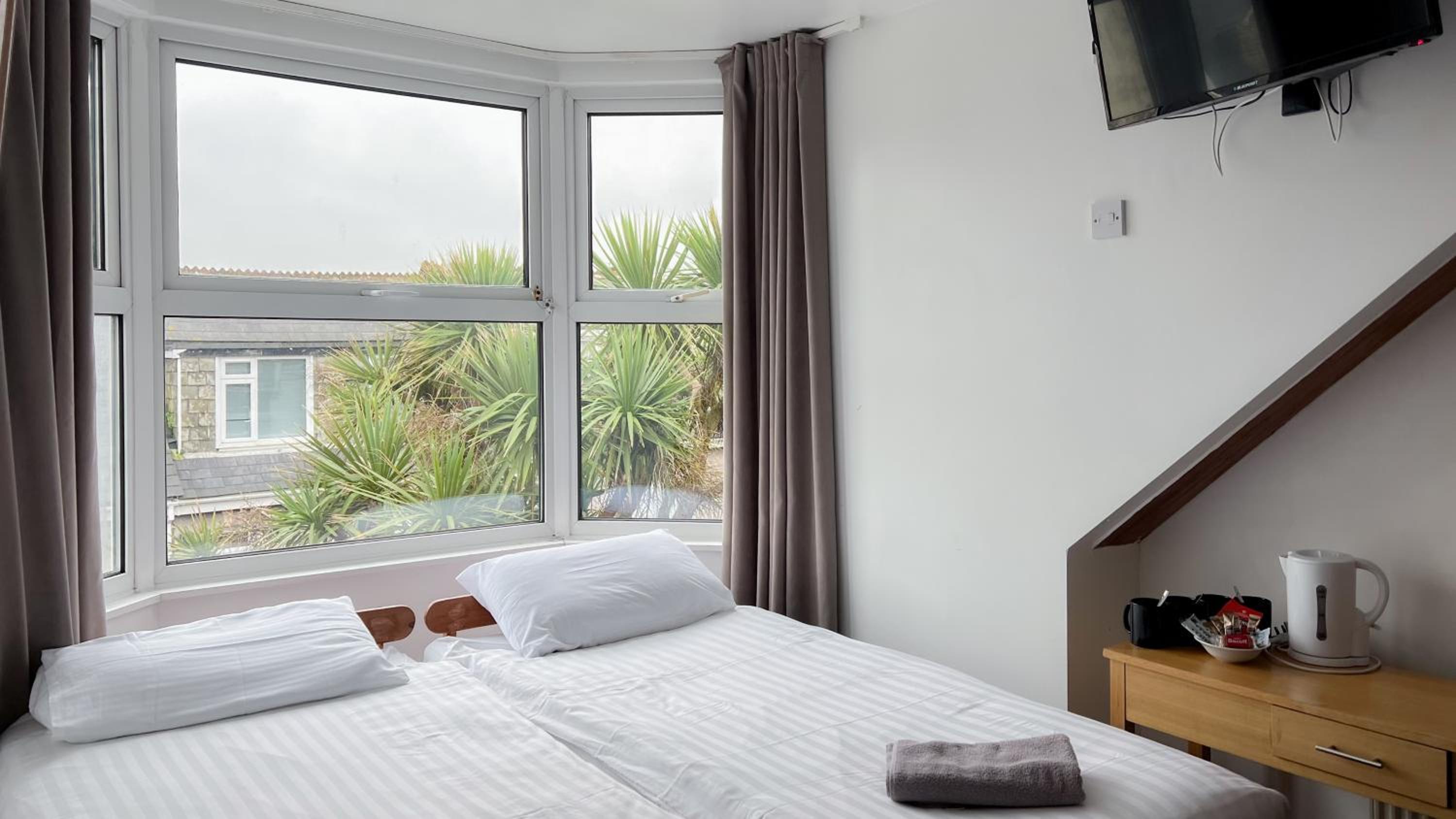 Room was extremely small, beds were hard, no blind in the bedroom to keep the light out of the room, shower basin was filling up with water whilst showering, rooms wernt cleaned we stayed there for 3 nights, no parking on premises had to find somewhere to park everyday, no breakfast or food facilities on site, only if your took your own, no clean towels put in the room had to go down for them daily, never any staff in site when needed.