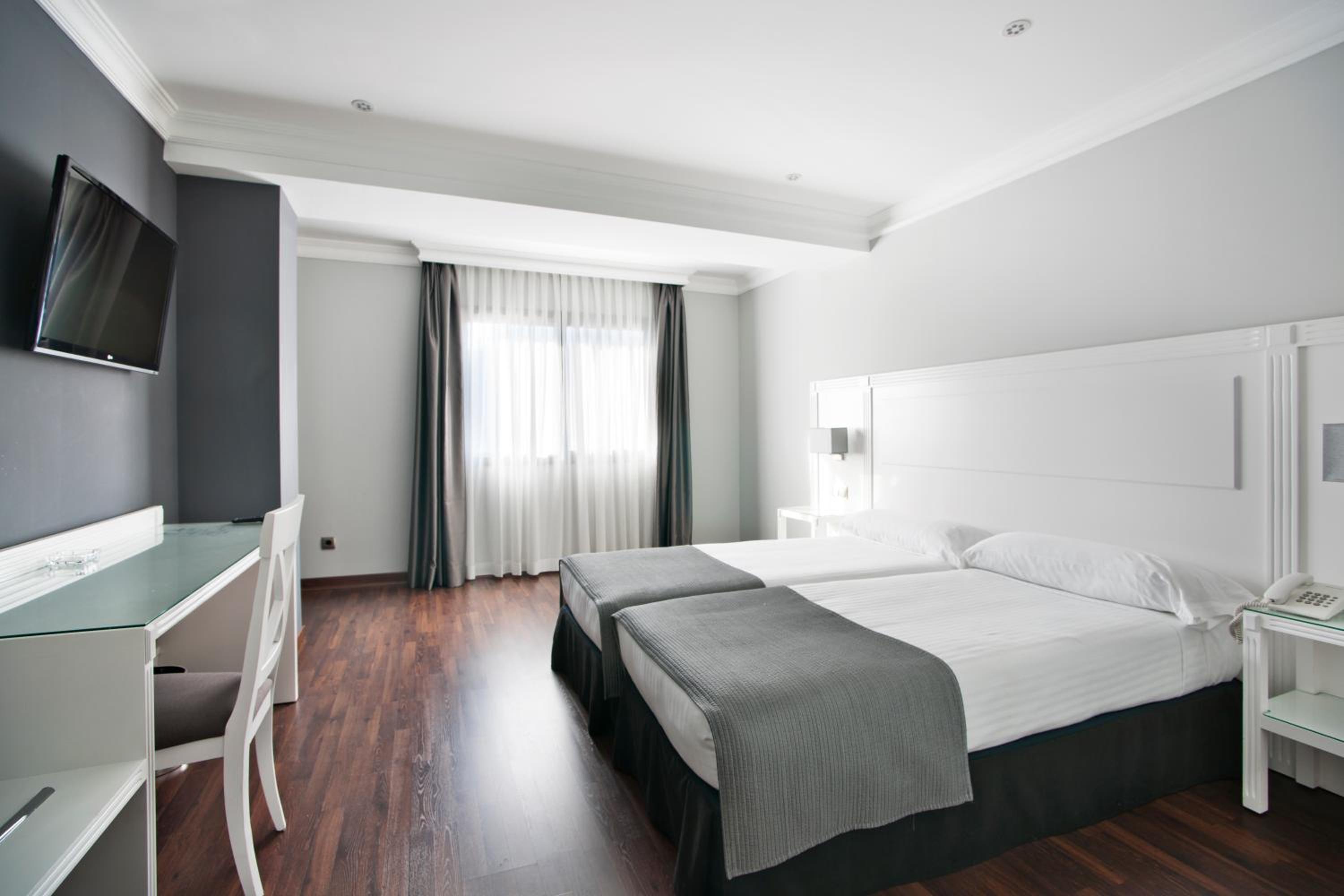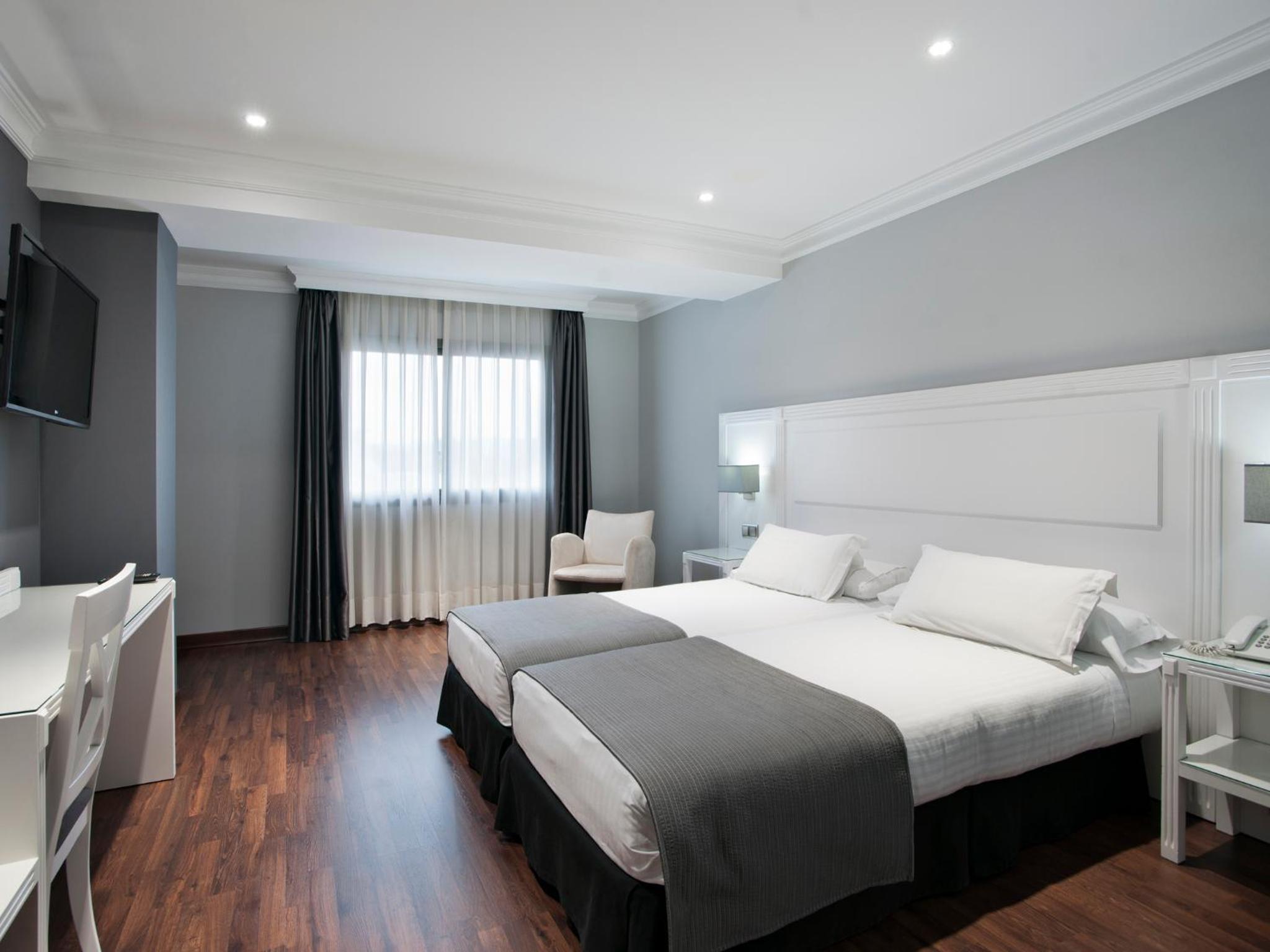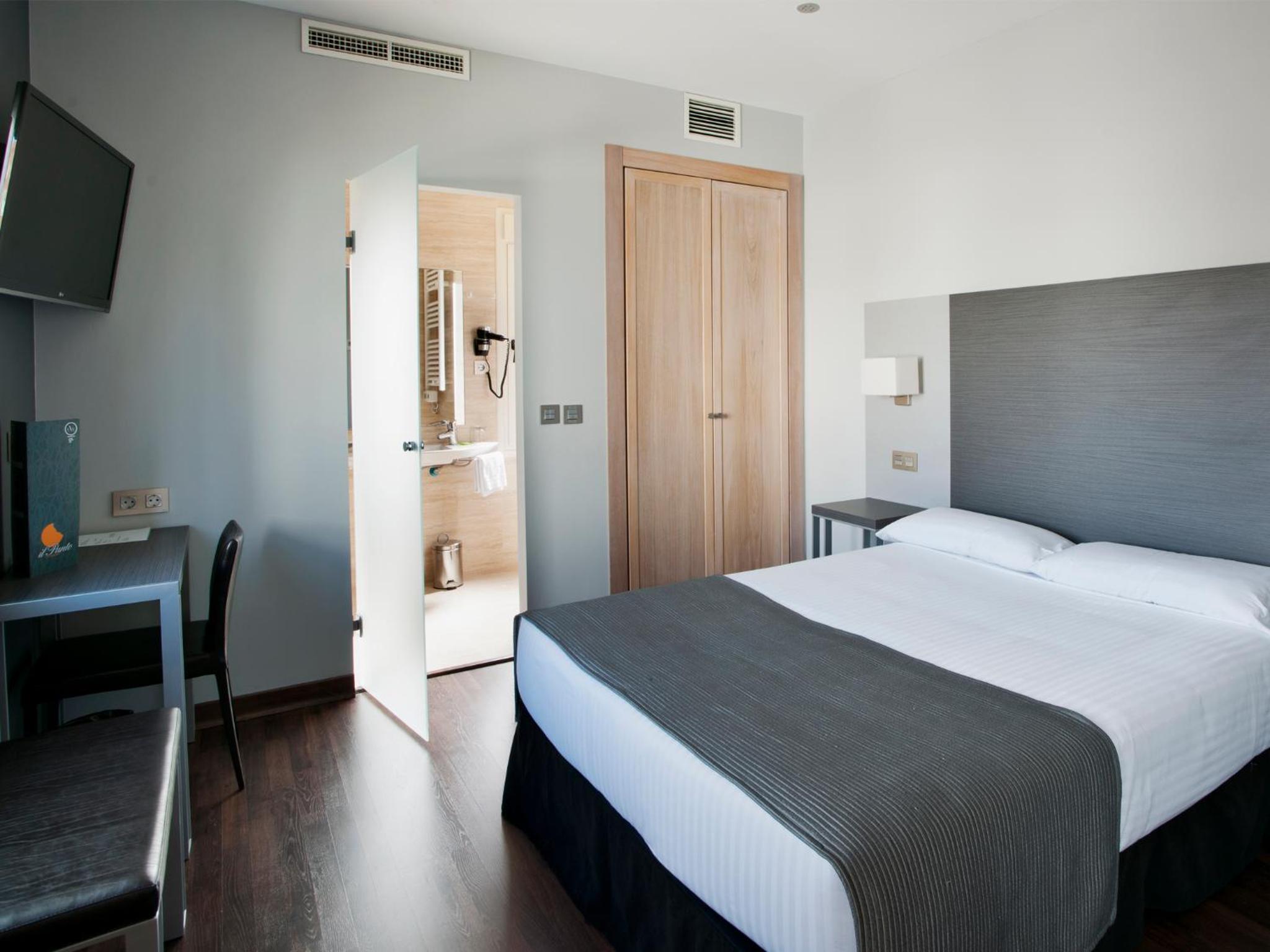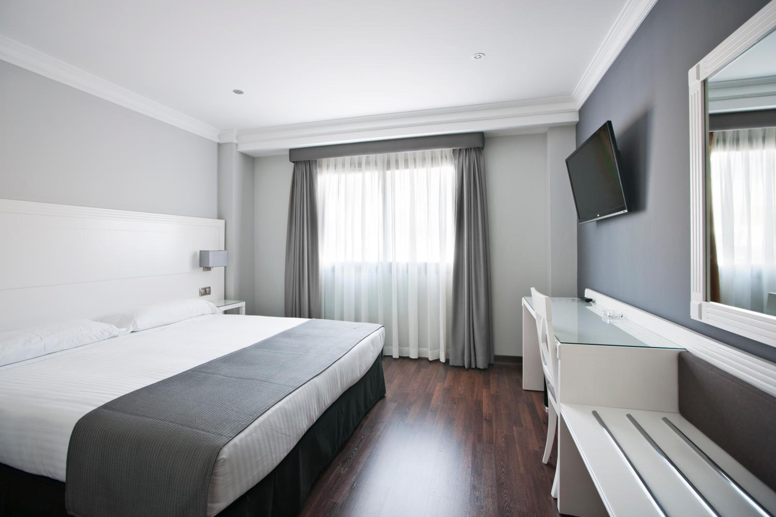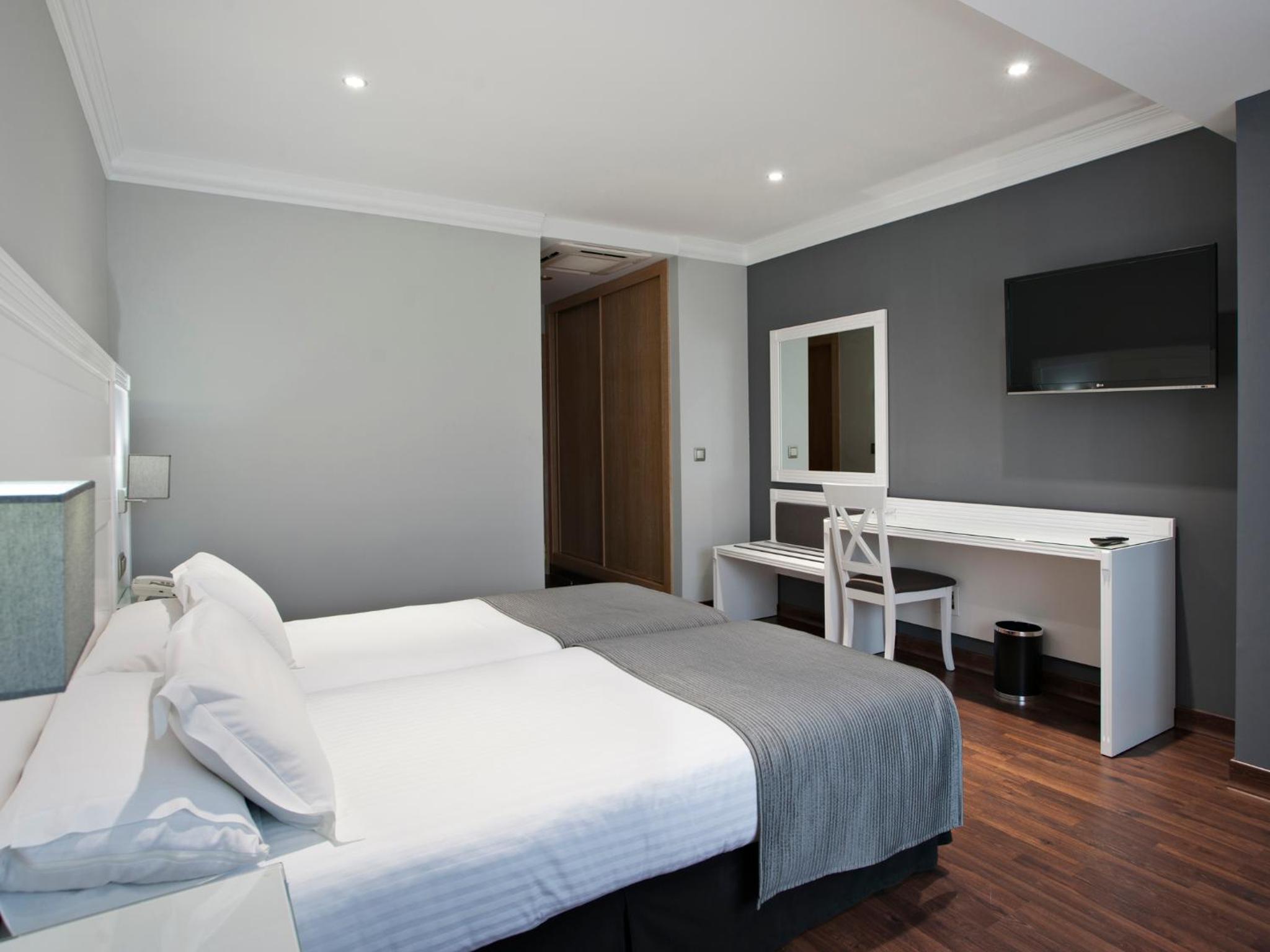 The UVE Alcobendas offers stylish, air-conditioned rooms with a flat-screen TV, minibar, and modern bathroom. Enjoy the comfort and convenience of neutral tones and complimentary toiletries.