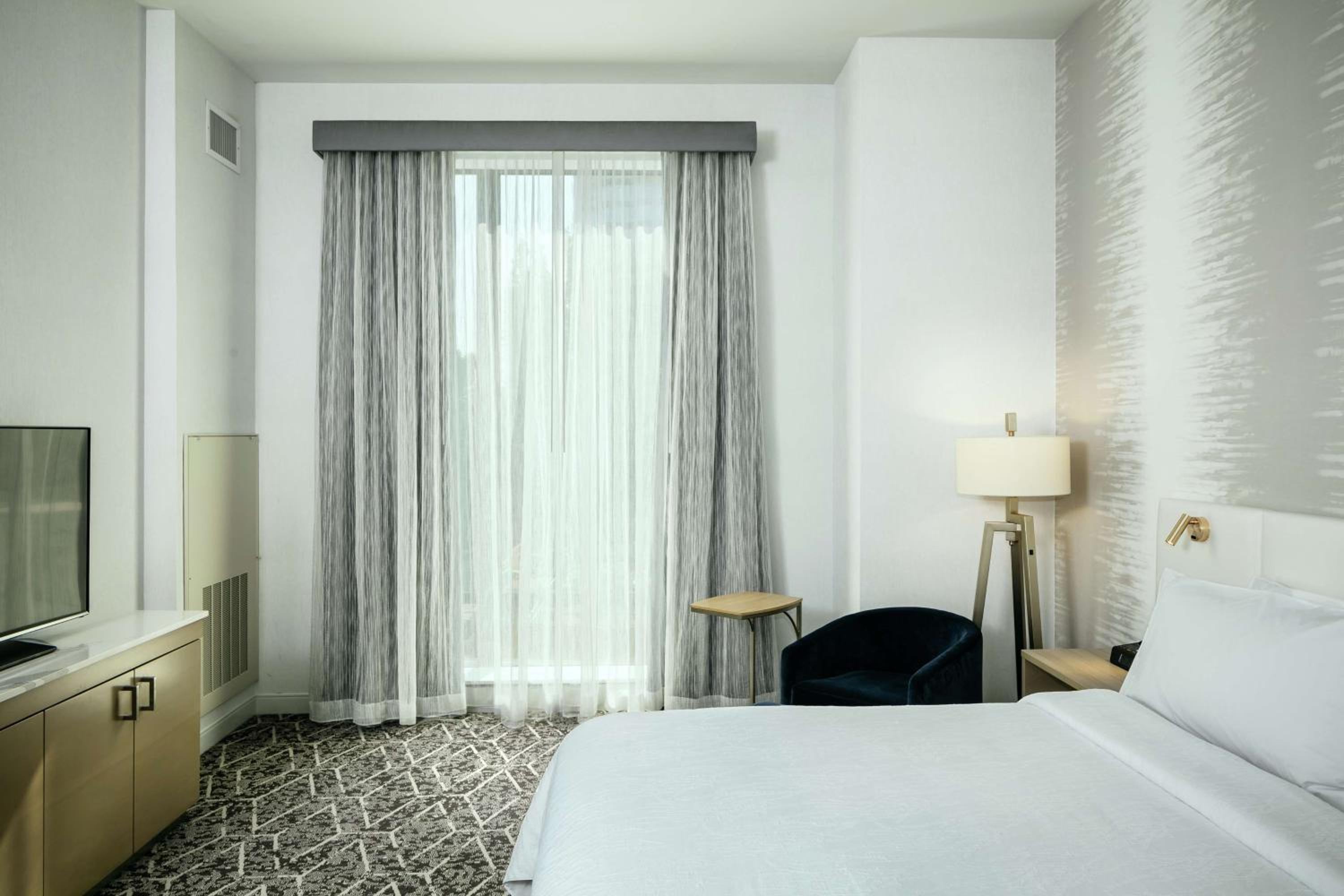 Experience comfort and convenience at Hilton Garden Inn Seattle Bellevue Downtown. Each room is equipped with modern amenities including free WiFi, flat-screen TV, and a cozy seating area. Relax in style with a private bathroom and enjoy the added convenience of a fridge in select rooms.