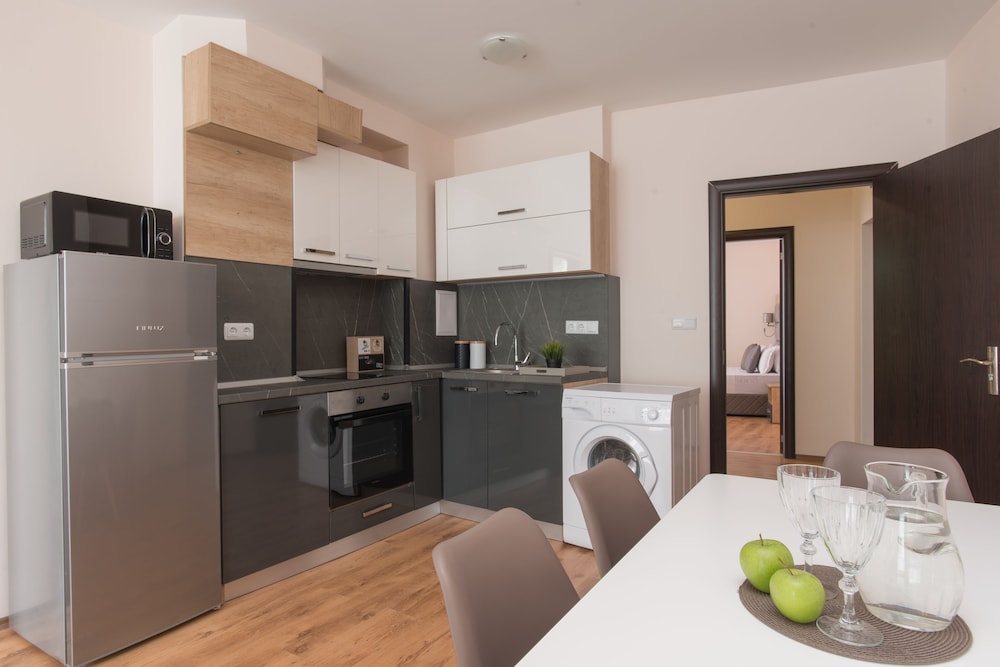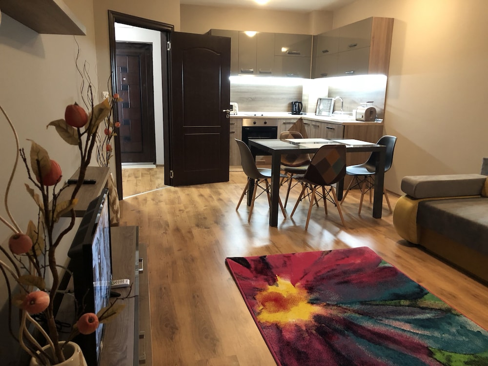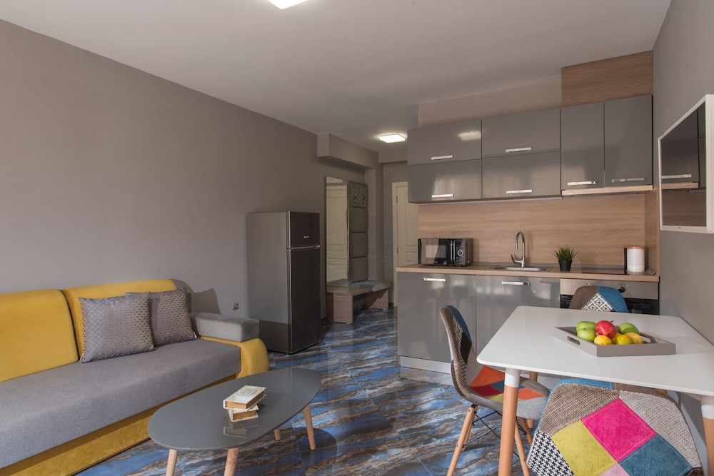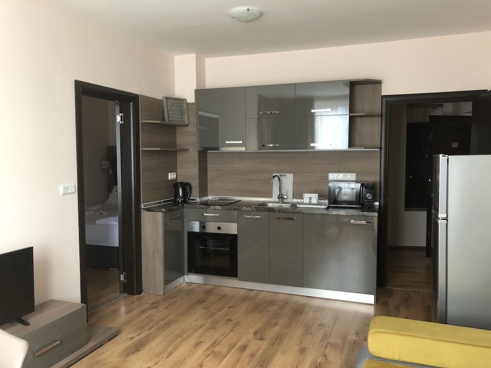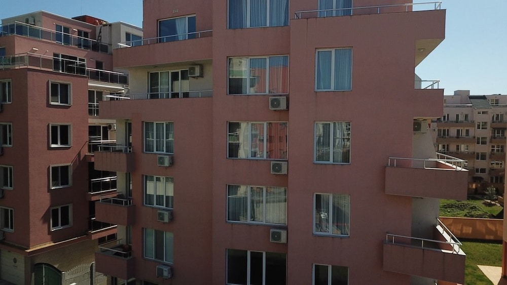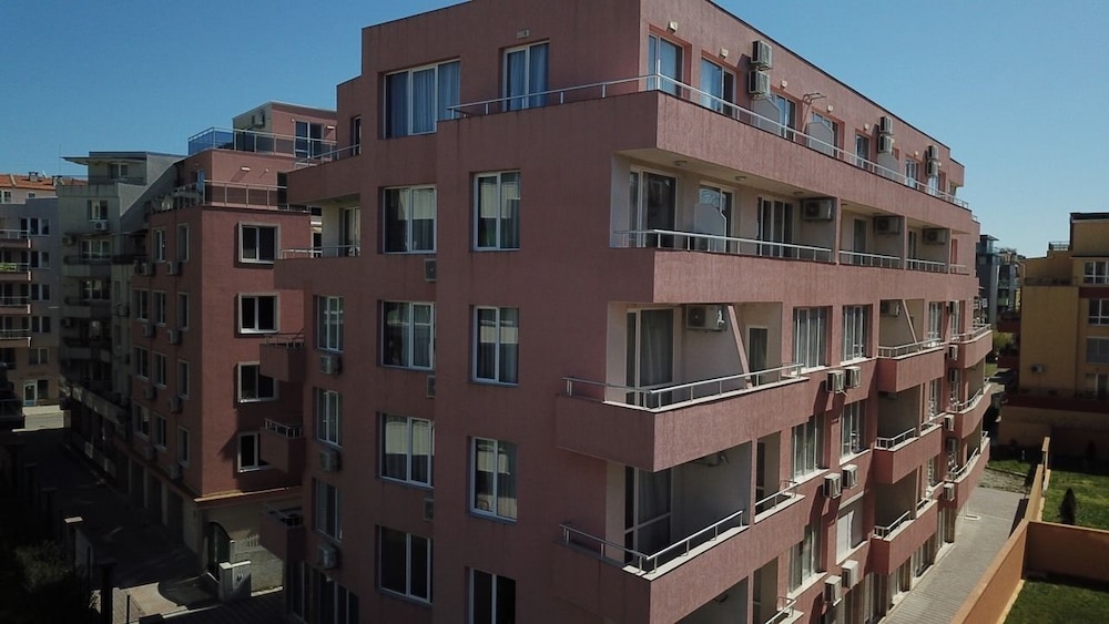 Hotel na zdjęciach wygląda świetnie, niestety sytuacja w realu jest zgoła inna. Brudne ściany, zafarbowana i niedoprana pościel, brak futryn, okleina schodząca z drzwi itp to jest to co was spotka po wejściu do pokoju. Zarezerwowany apartament z 2 sypialniami okazał się mieć mała klitkę na 1 łóżko a drugie łóżko było wstawione w kuchni z salonem. Widok na morze był chyba 20 lat temu zanim powstały bloki między plaża a hotelem, morza nie było widać nawet z najwyższego piętra. Taras na dachu niestety nie istniał. Hotel de facto nazywał się salt lake apartaments i straciliśmy sporo czasu szukając to. Hotel miał być przyjazny psom co się później okazało, pies najpierw nie mógł być, później za dopłatą 20e noc, koniec końców pies też mógł zostać, dodam że ten hotel został zarezerwowany właśnie ze względu na możliwość przenocowania z psem. Proszę też uważać na check in, wg hotelu południe to 14.00 nie 12.00 i jak wyżej dopłata 20e za szybszy check in. To miejsce to jakaś porażka! Zdecydowanie nie polecam!