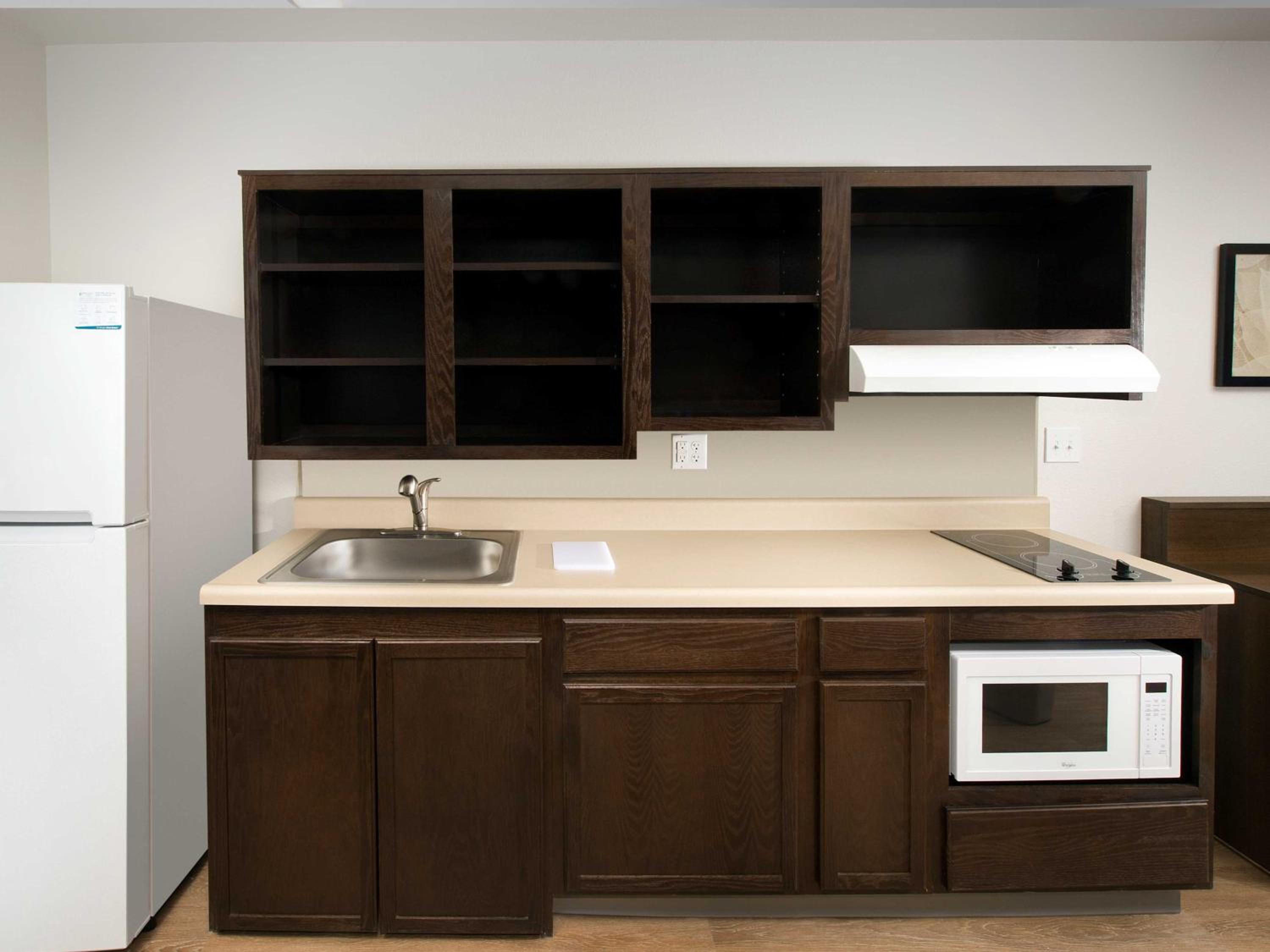 Had kitchen cabinets but no utensils, coffee cups etc.