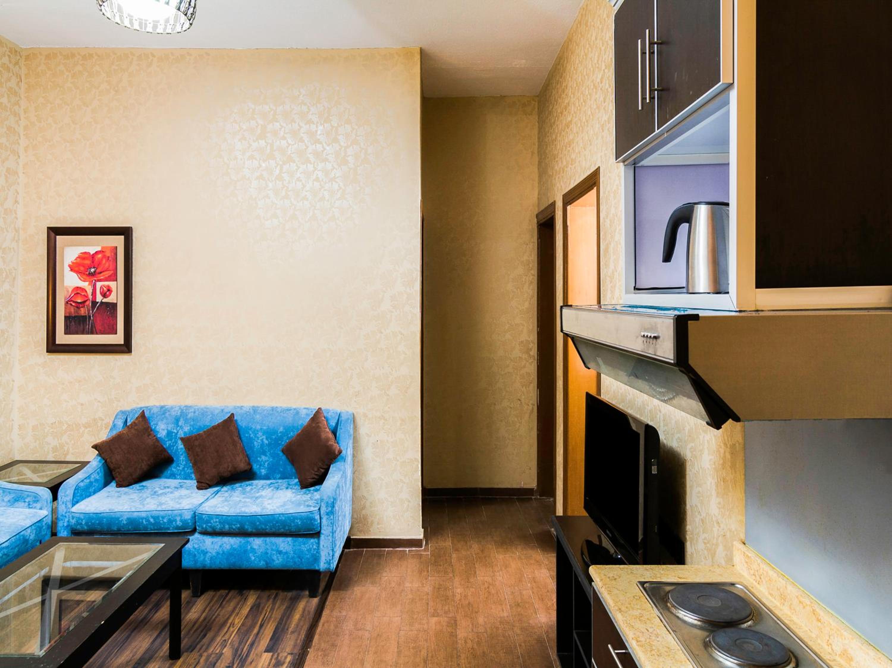 كانت اقامه جيده وتعامل جيد من الموظفين وخصوصاً عمر المصري وعبدالله السعودي الله يعطيهم الصحه والعافيه إستقبال جيد وتعامل جيد