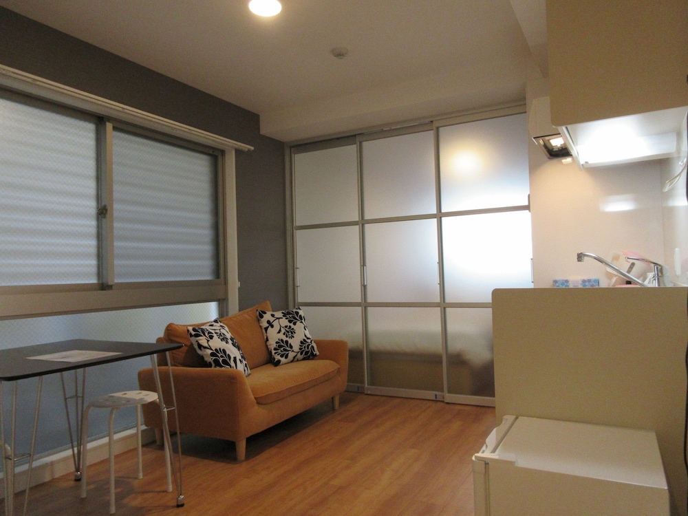 Large room with kitchenette and sofa, full bath for a very reasonable price. Four minutes by foot from subway, 20 minutes by foot to train station. Easy walking distance to downtown and Gion. Good restaurants nearby, just ask at desk. And say